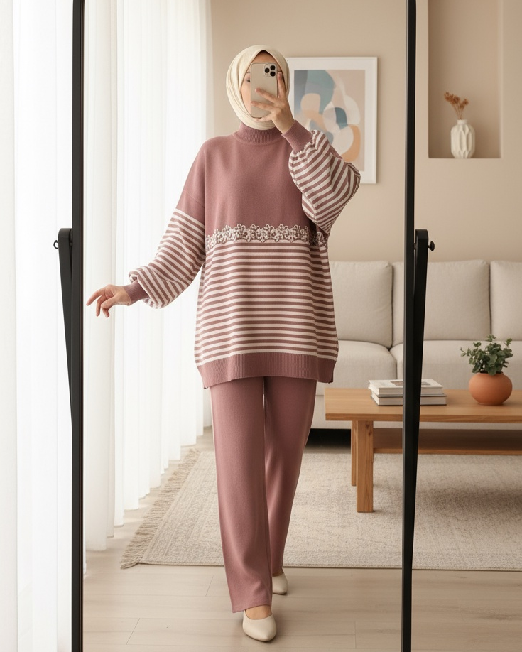 Süzene Nakışlı Çizgili Triko Tunik -G.Kurusu-G.Kurusu