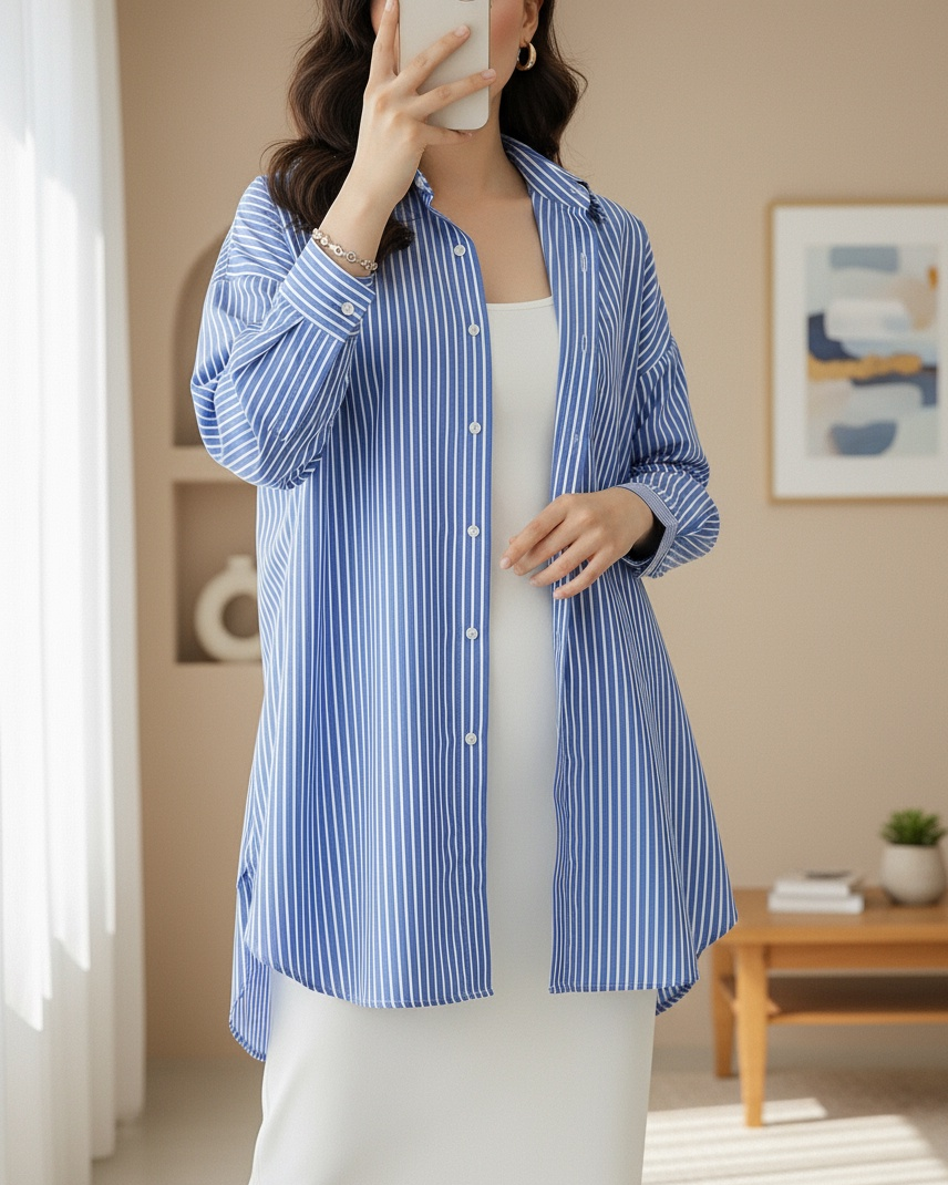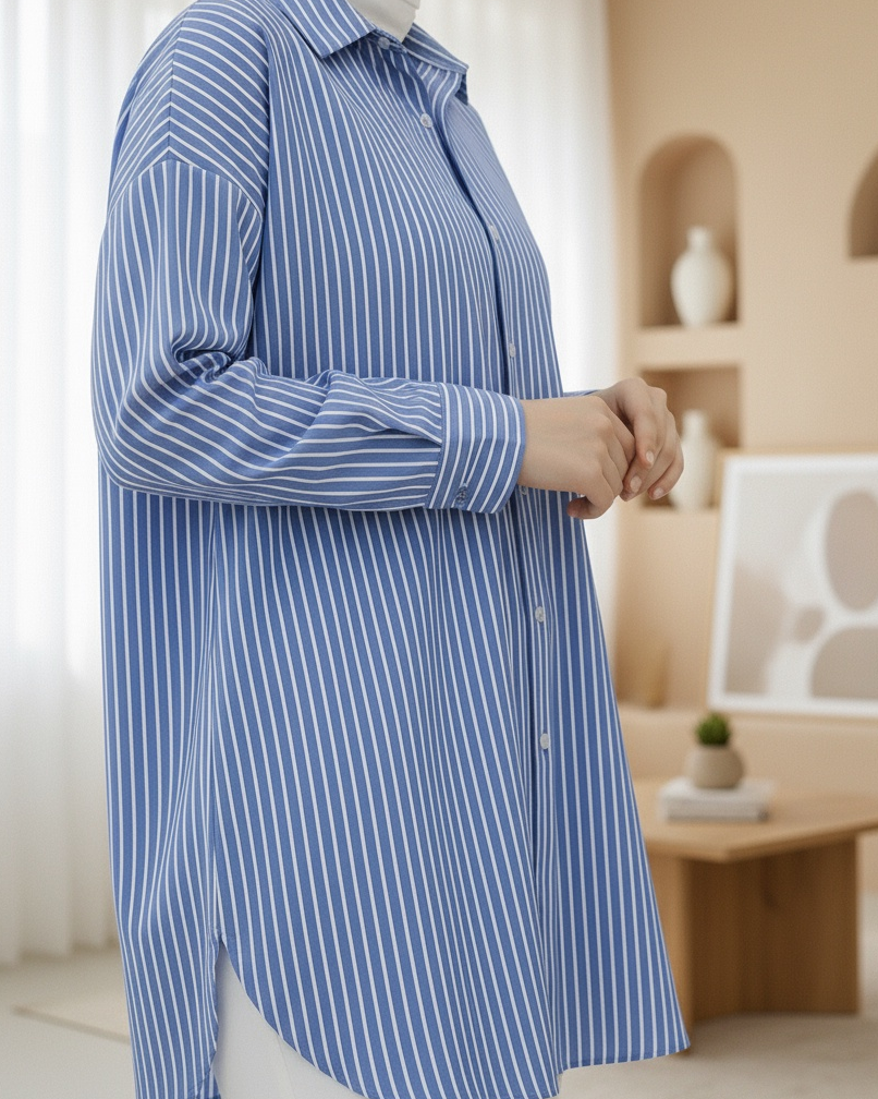 Tek Cepli Çizgili Gömlek -Mavi-Mavi