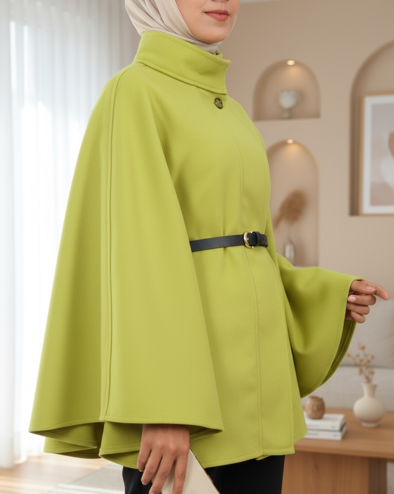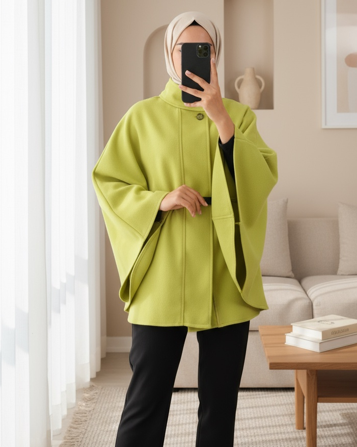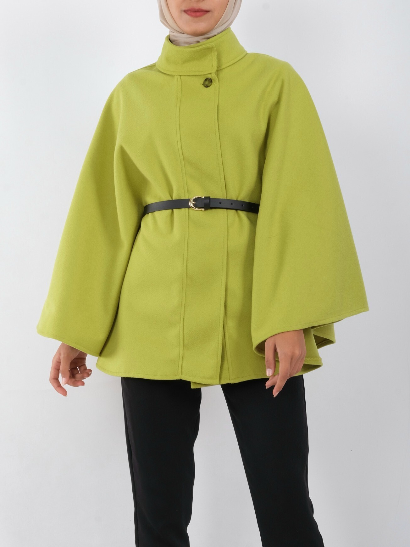 Tek Düğme Kemerli Panço -Yağ Yeşili-Yağ Yeşili