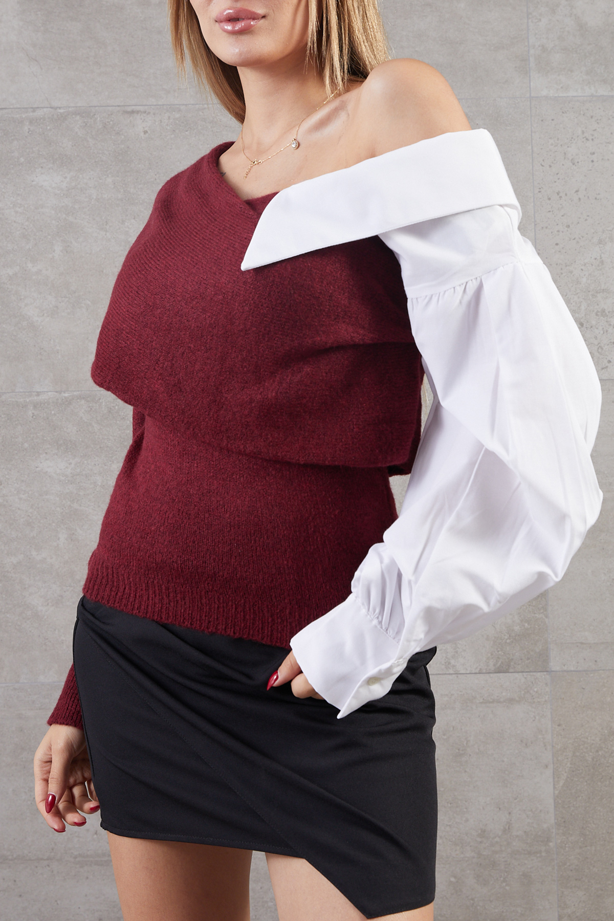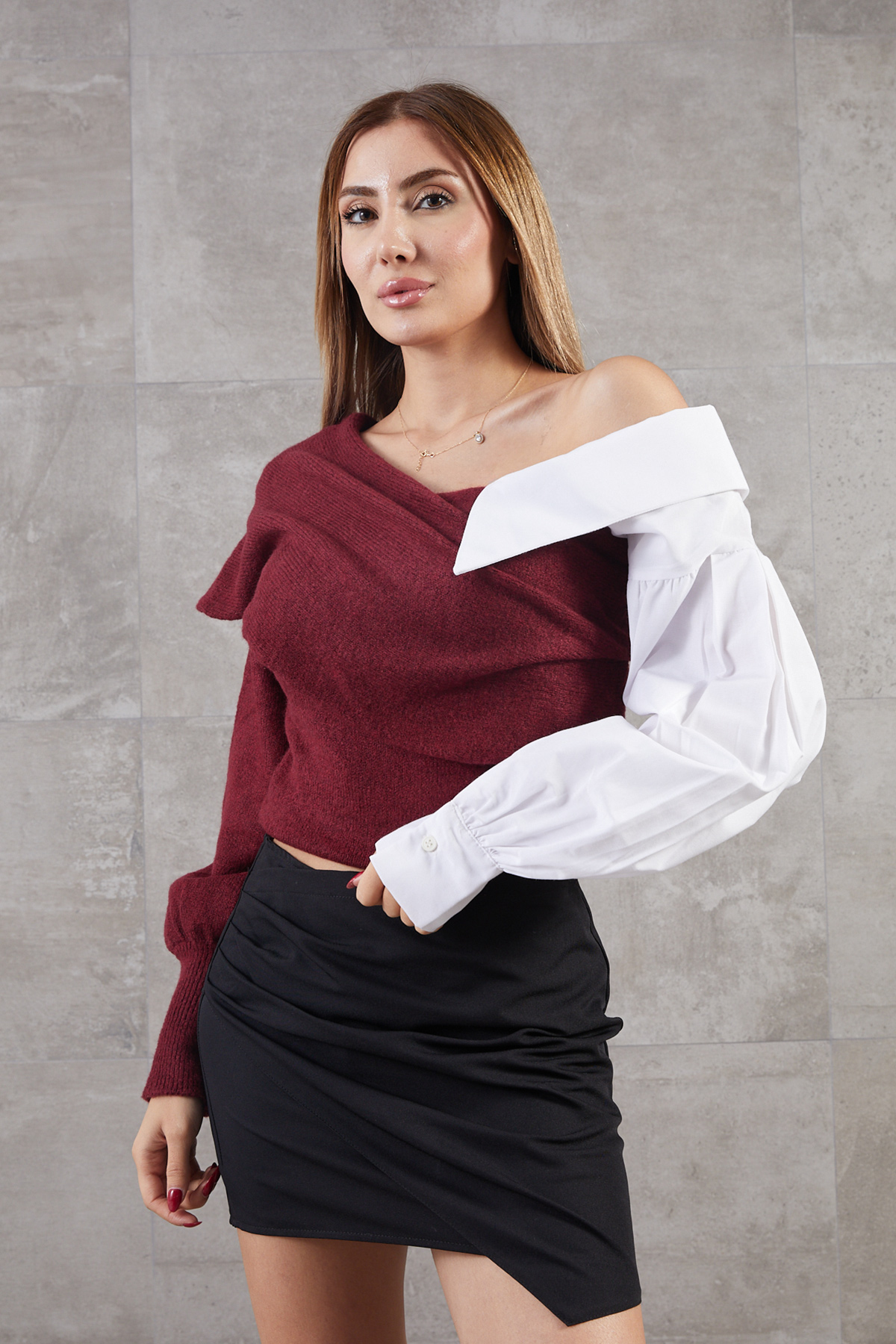 Tek Kol Triko Tek Kol Gömlek Kazak-Bordo