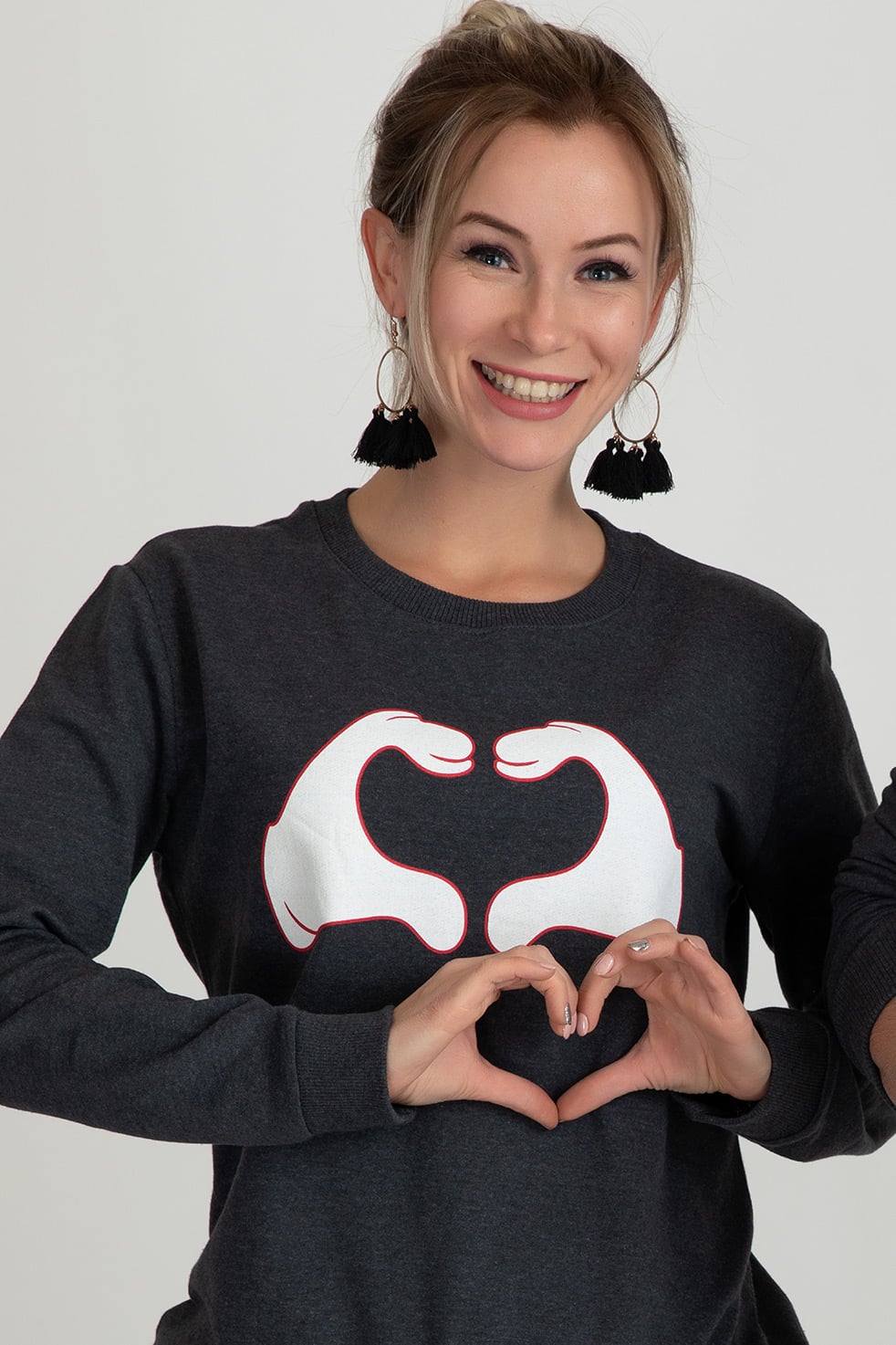 Kalp Desenli Bayan Sweat