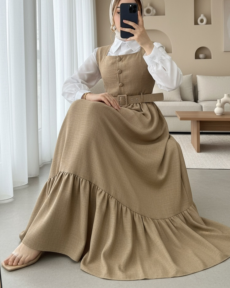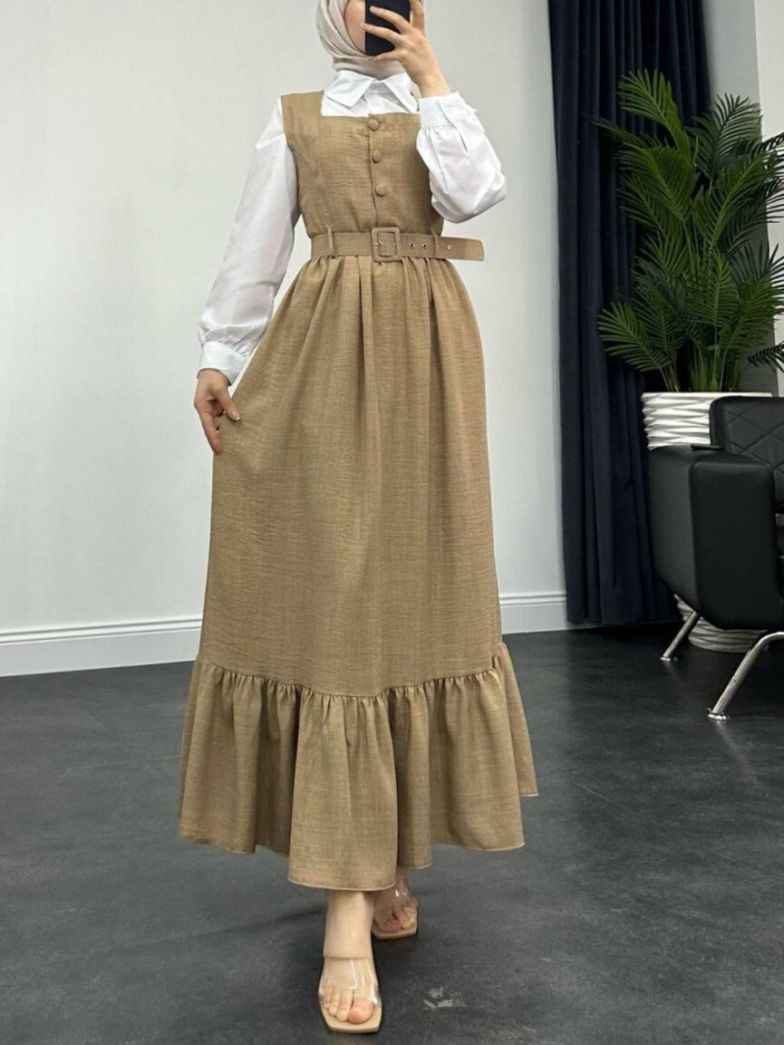 Top Düğmeli Gömlekli İkili Takım Jile -Vizon-Vizon