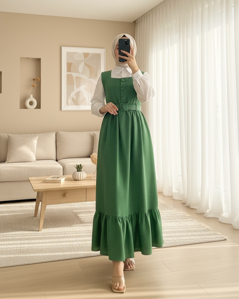 Top Düğmeli Gömlekli İkili Takım Jile -Yeşil-Yeşil