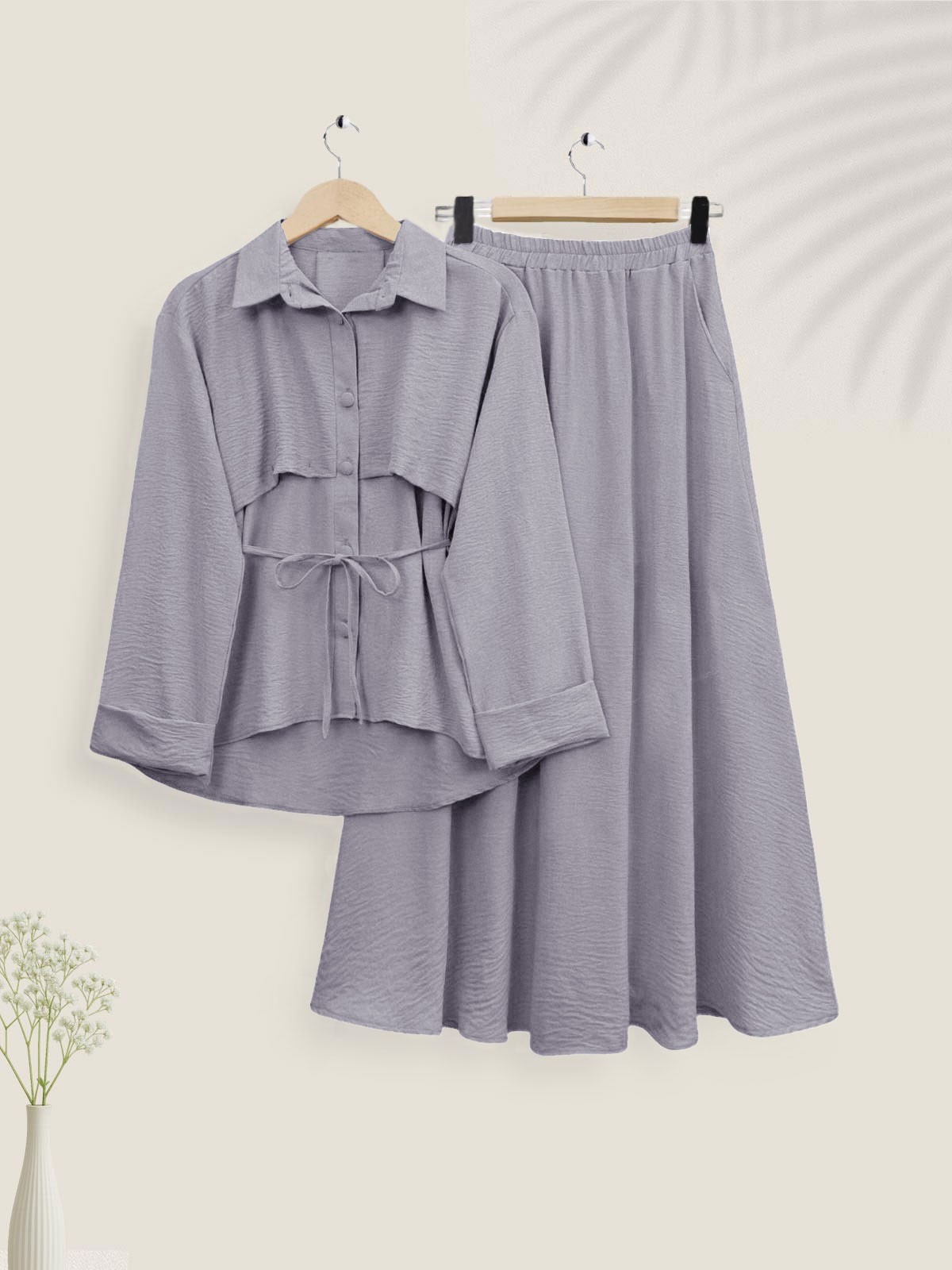 Top Düğmeli Kemerli Etekli Ayrobin Takım -Gri-Gri