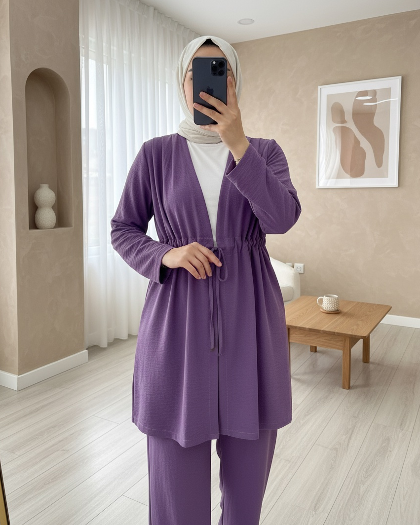 Tünel Bağcıklı Ayrobin Kimono Takım -Mor-Mor