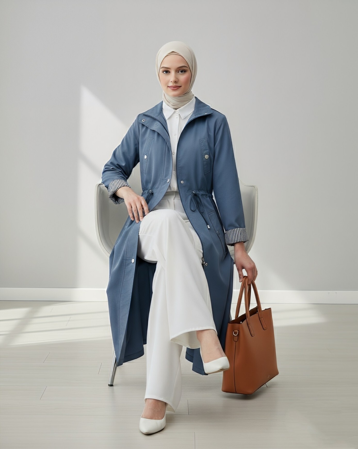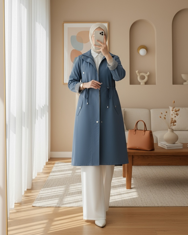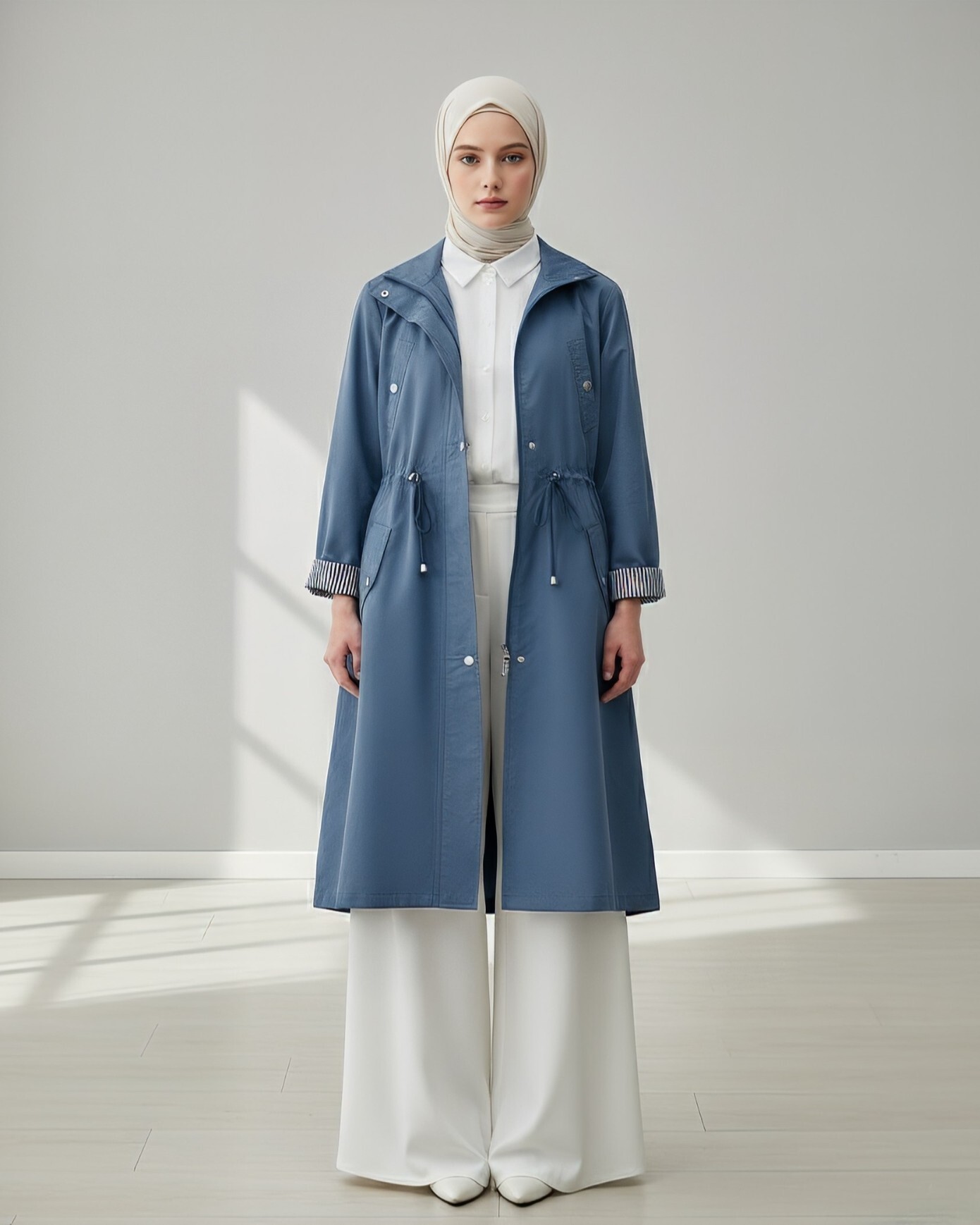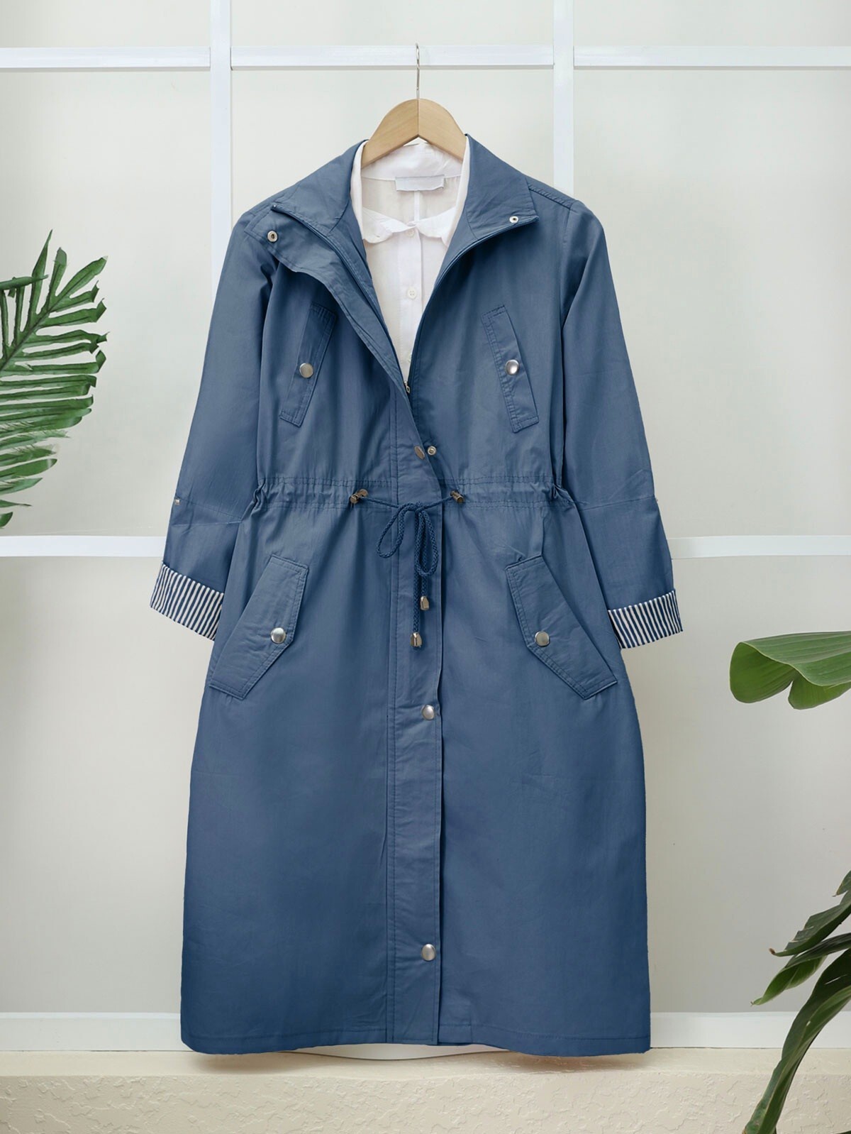 Tünel Bağcıklı Üst Cep Detaylı Astarsız Yıkamalı Organik Koton Trenckot -İndigo-İndigo