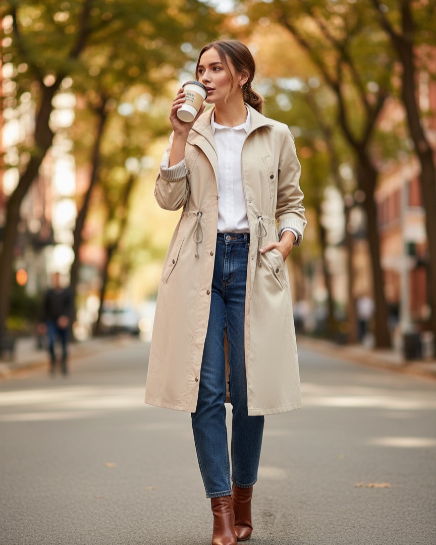 Tünel Bağcıklı Üst Cep Detaylı Astarsız Yıkamalı Organik Koton Trenckot -Taş-Taş