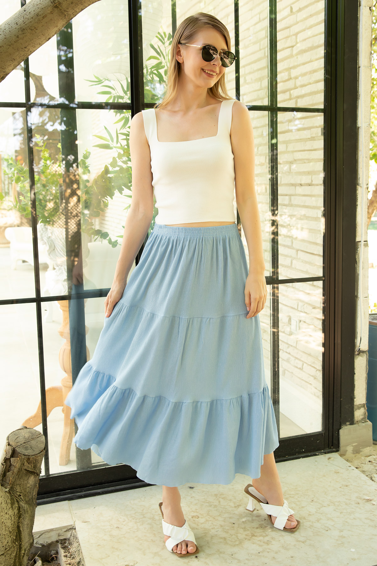 Üç Katlı Fırfırlı Etek-Açık Mavi