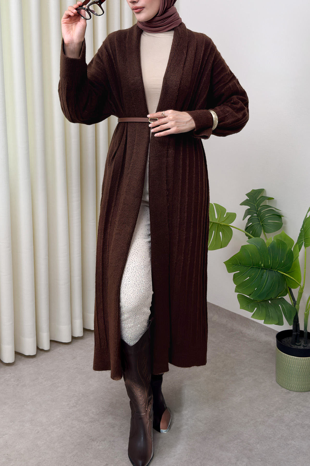 Uzun Triko Hırka 1515 - KAHVERENGİ-Kahverengi