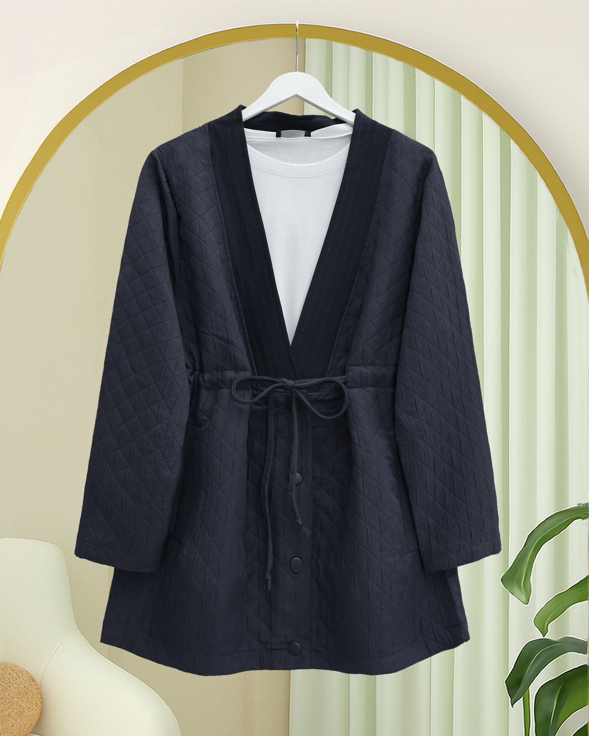 V Yaka Beli Bağcıklı Cepli Düğmeli Kap -Laci-Lacivert