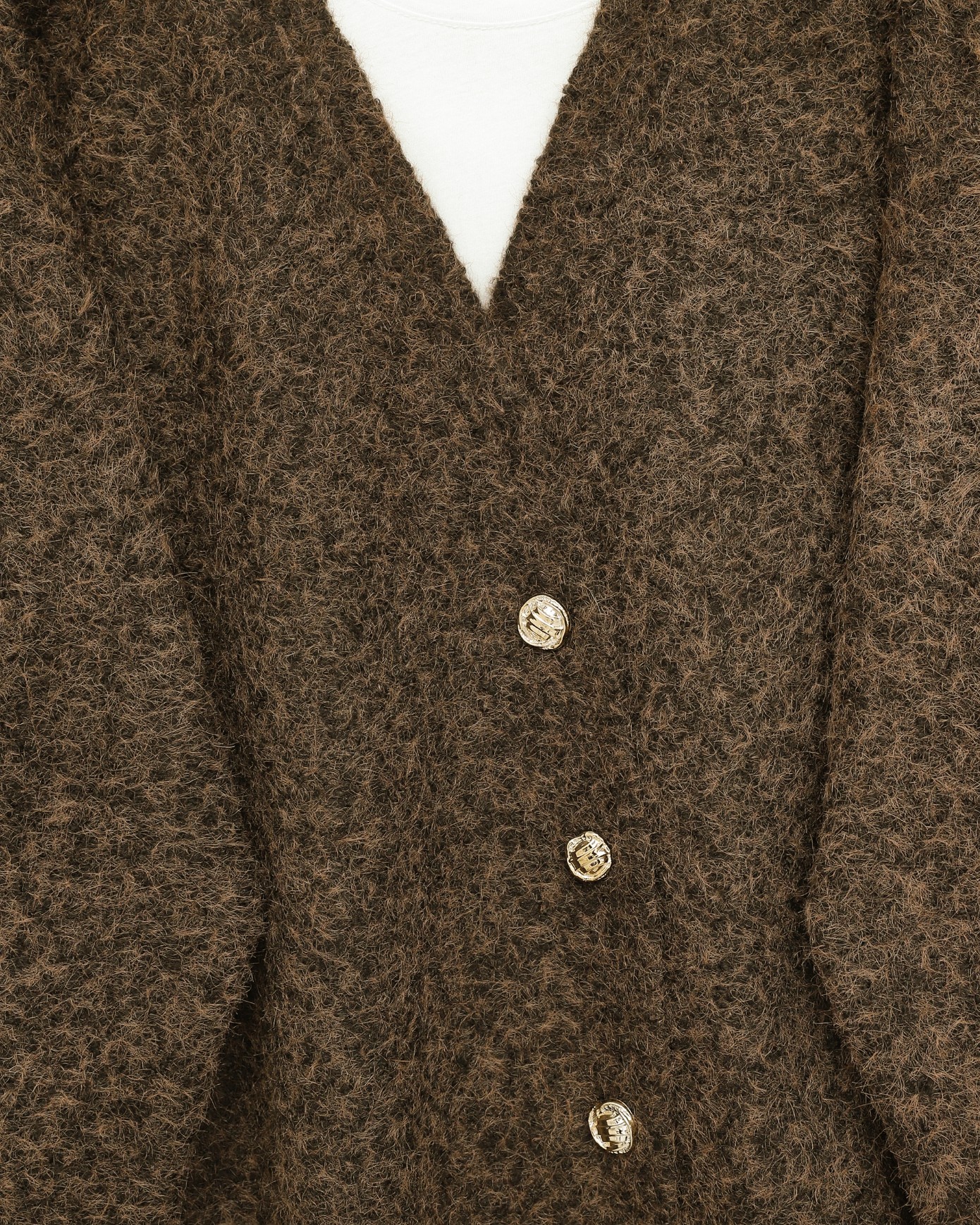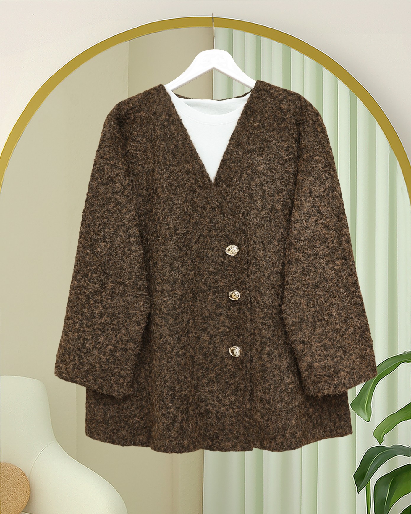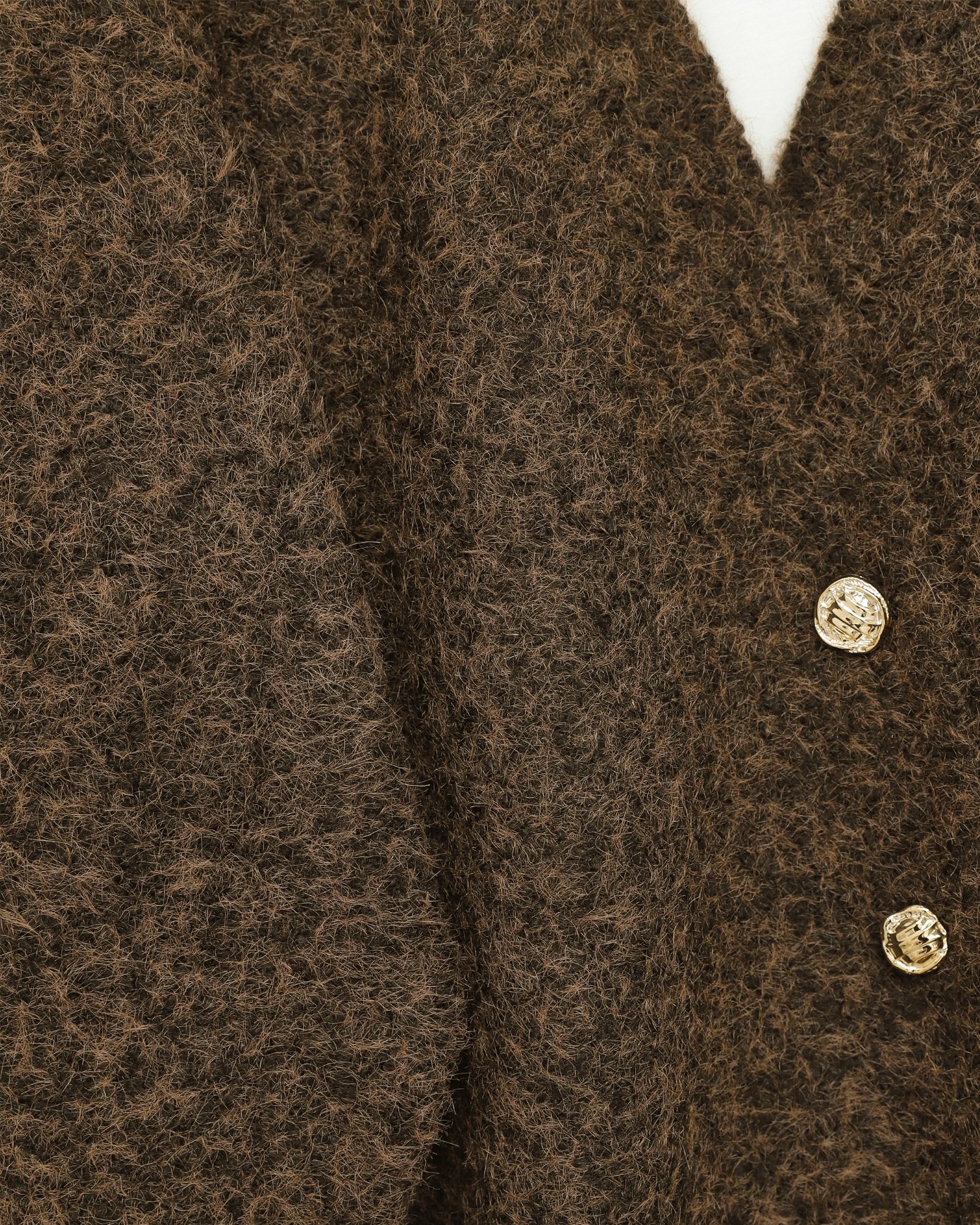 V Yaka Düğmeli Sakallı Kap -K. Kahve-K. Kahve