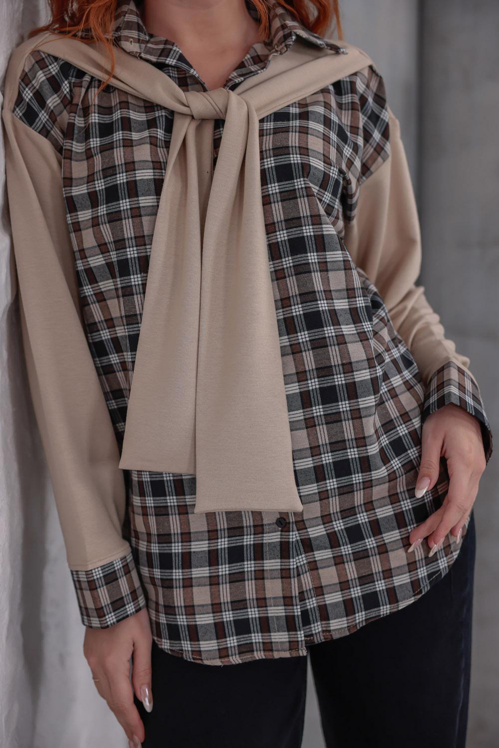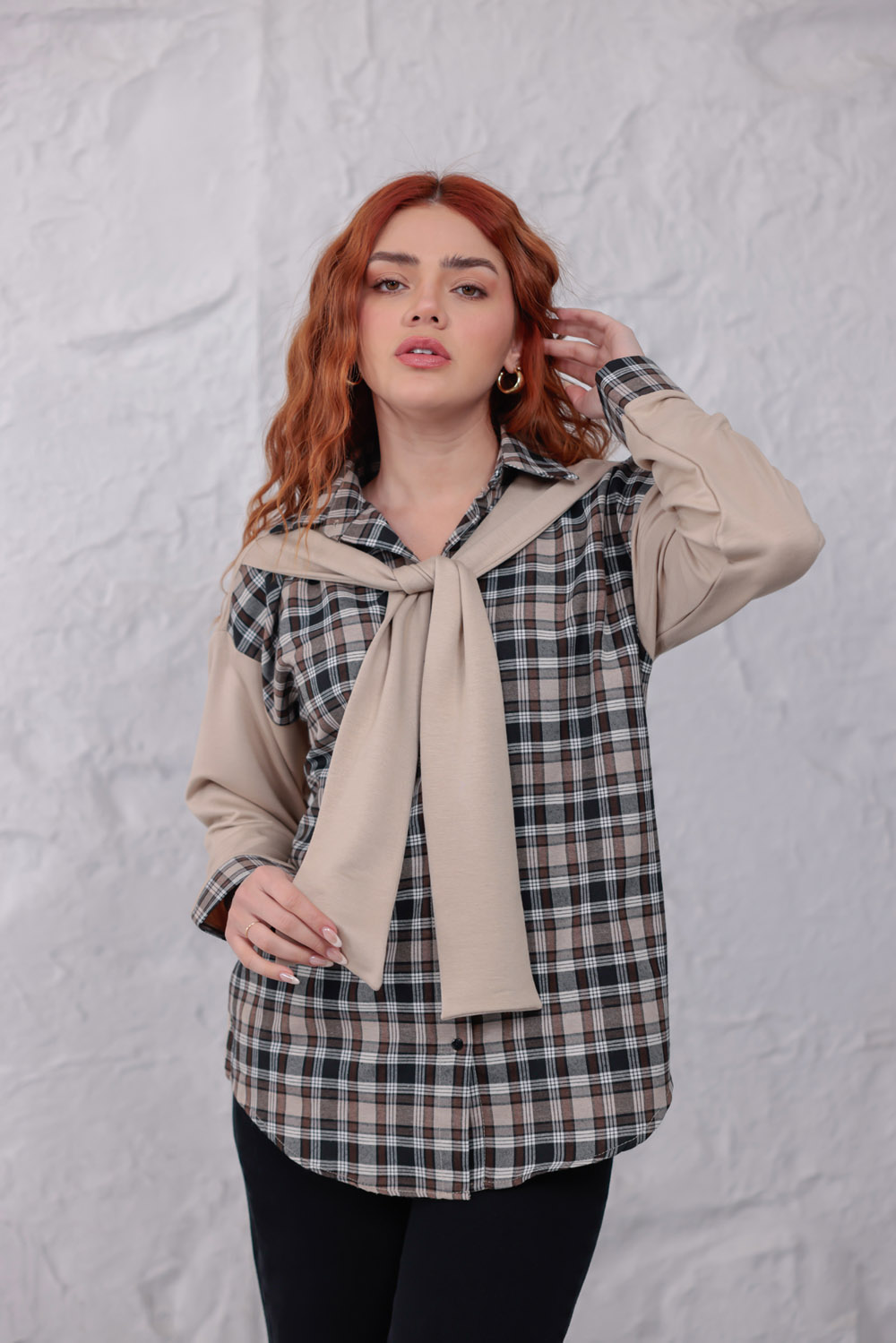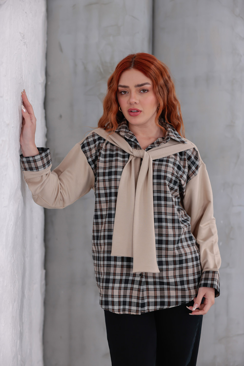 Vurgulu Ekose Gömlek Sütlü Kahve - 6450-Sütlü Kahve