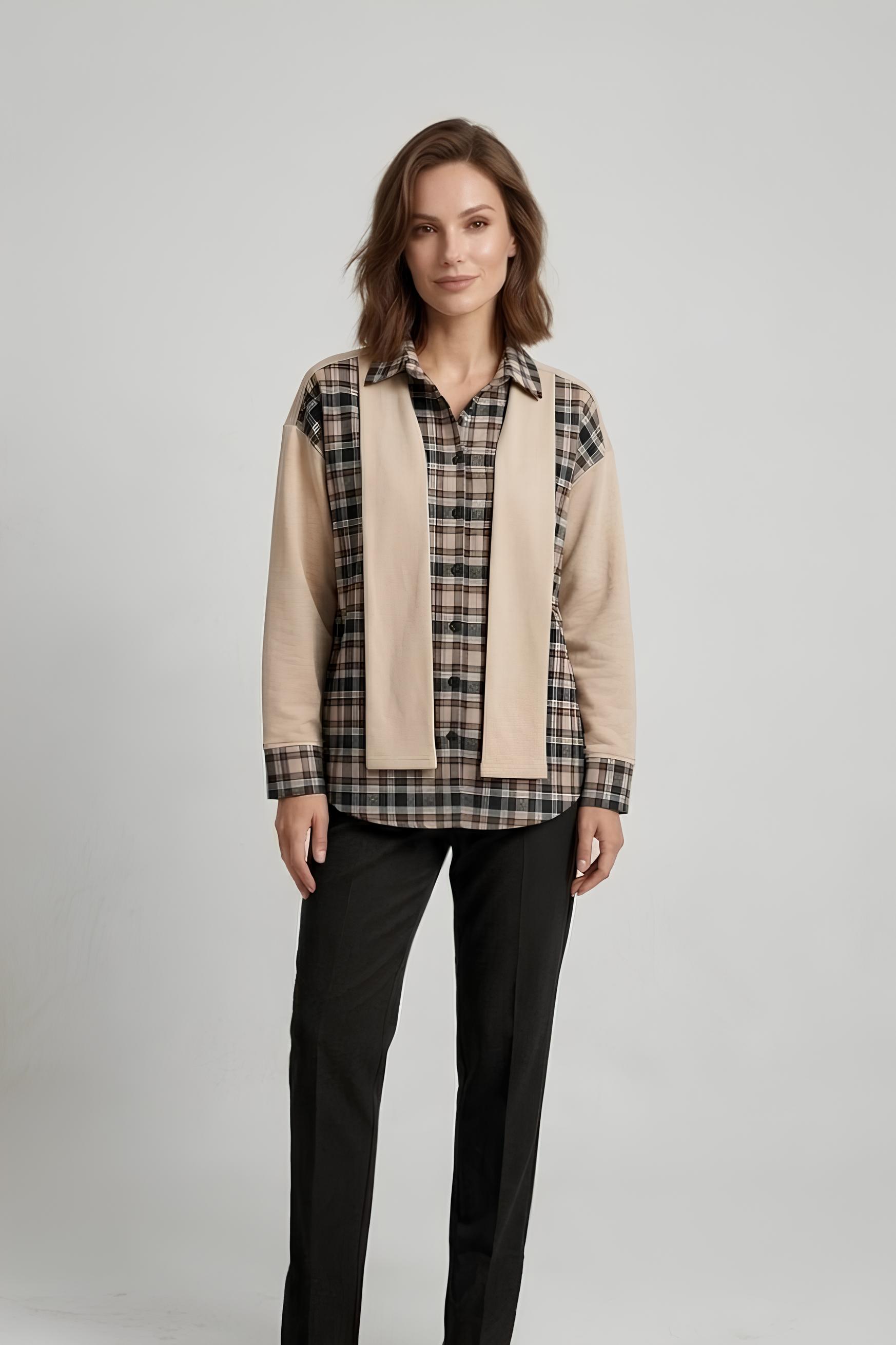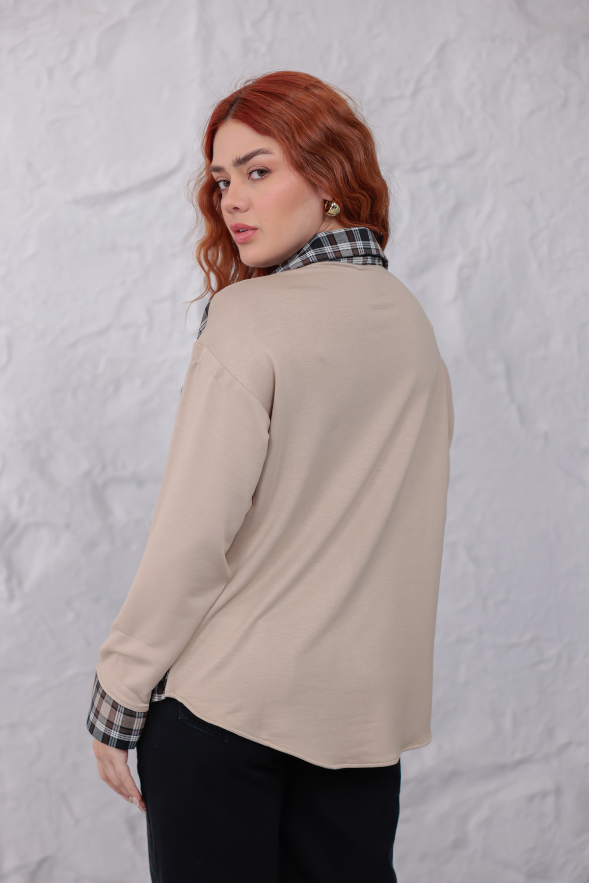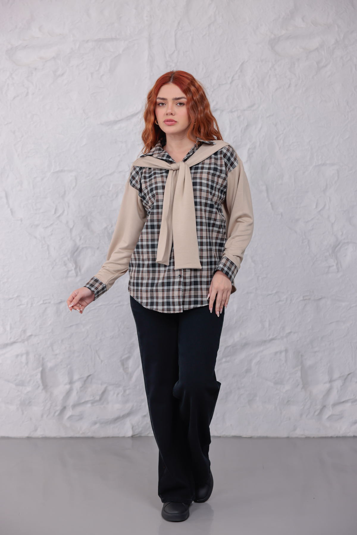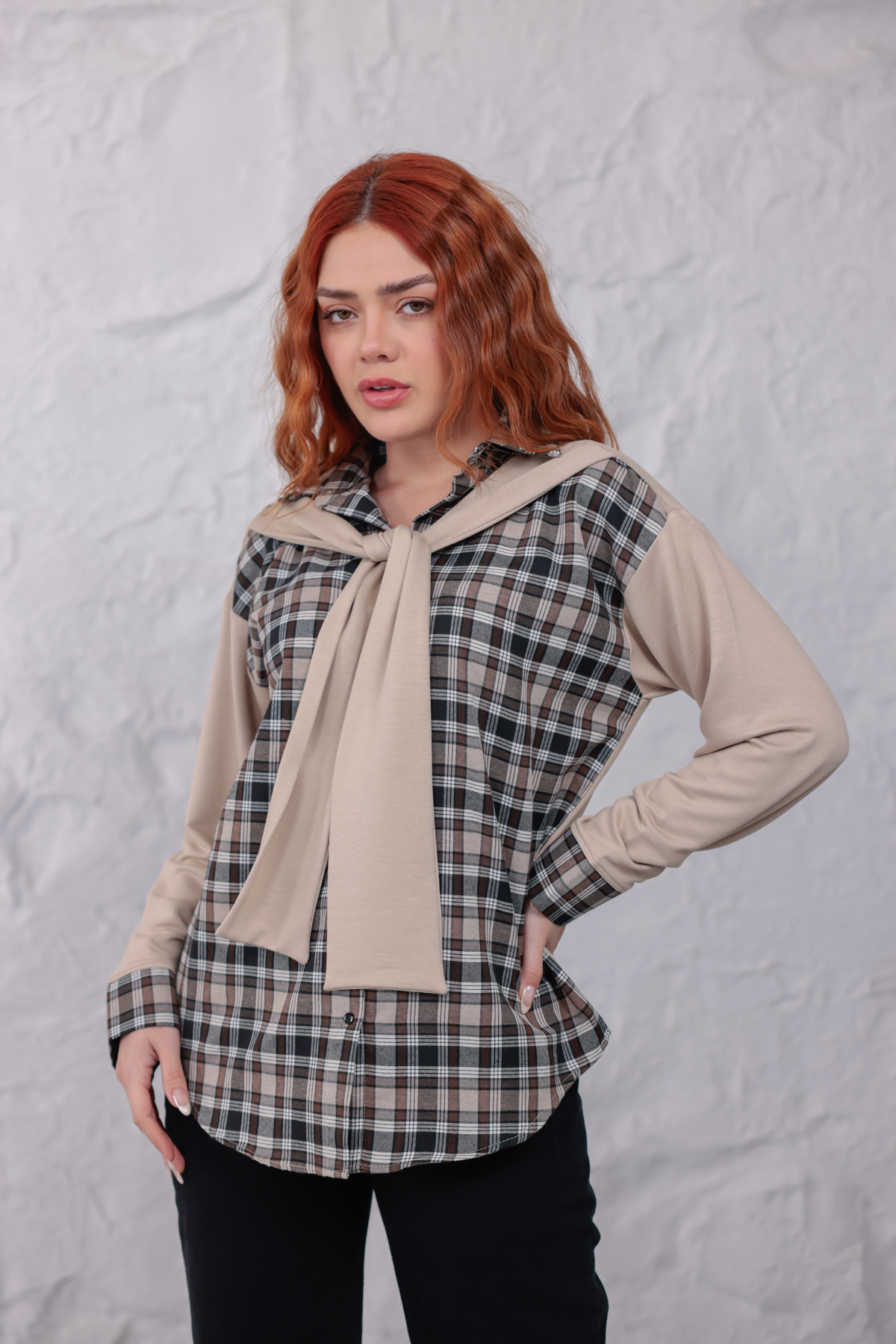 Vurgulu Ekose Gömlek Sütlü Kahve - 6450-Sütlü Kahve