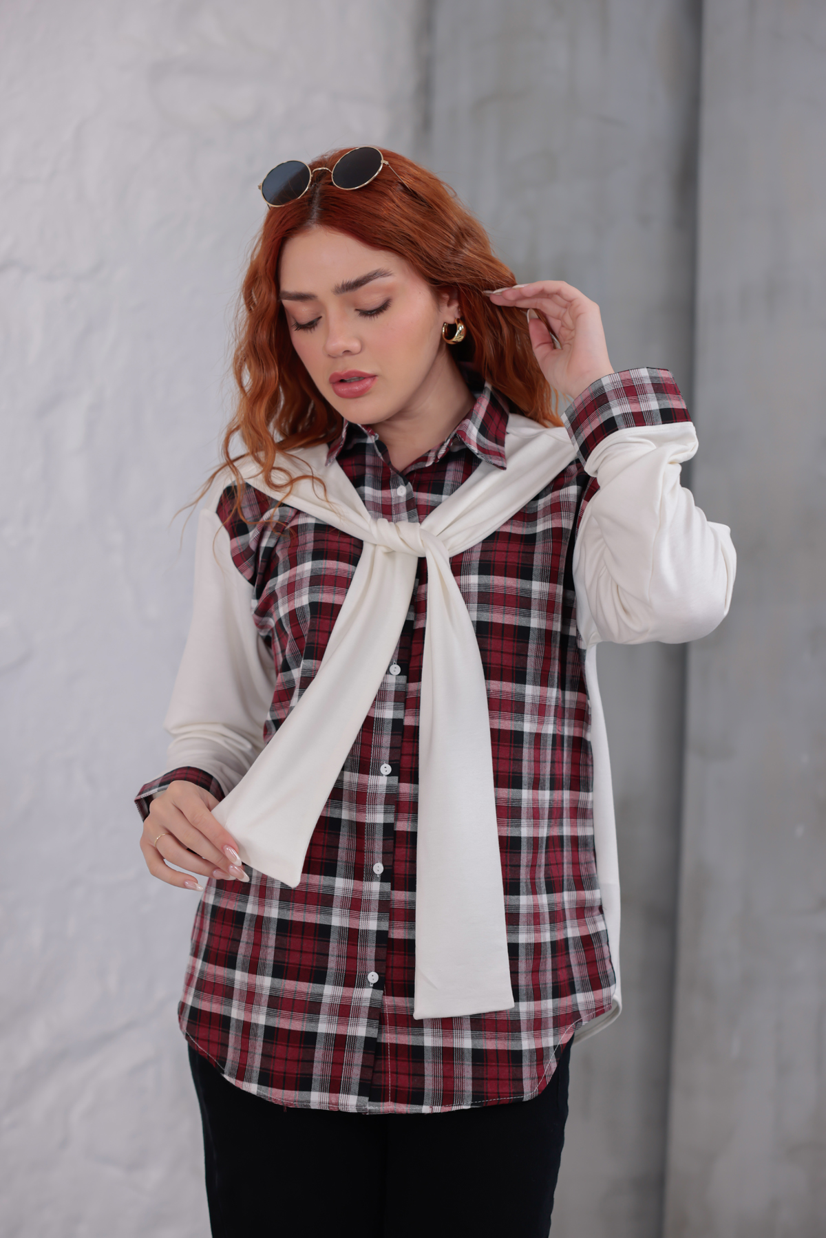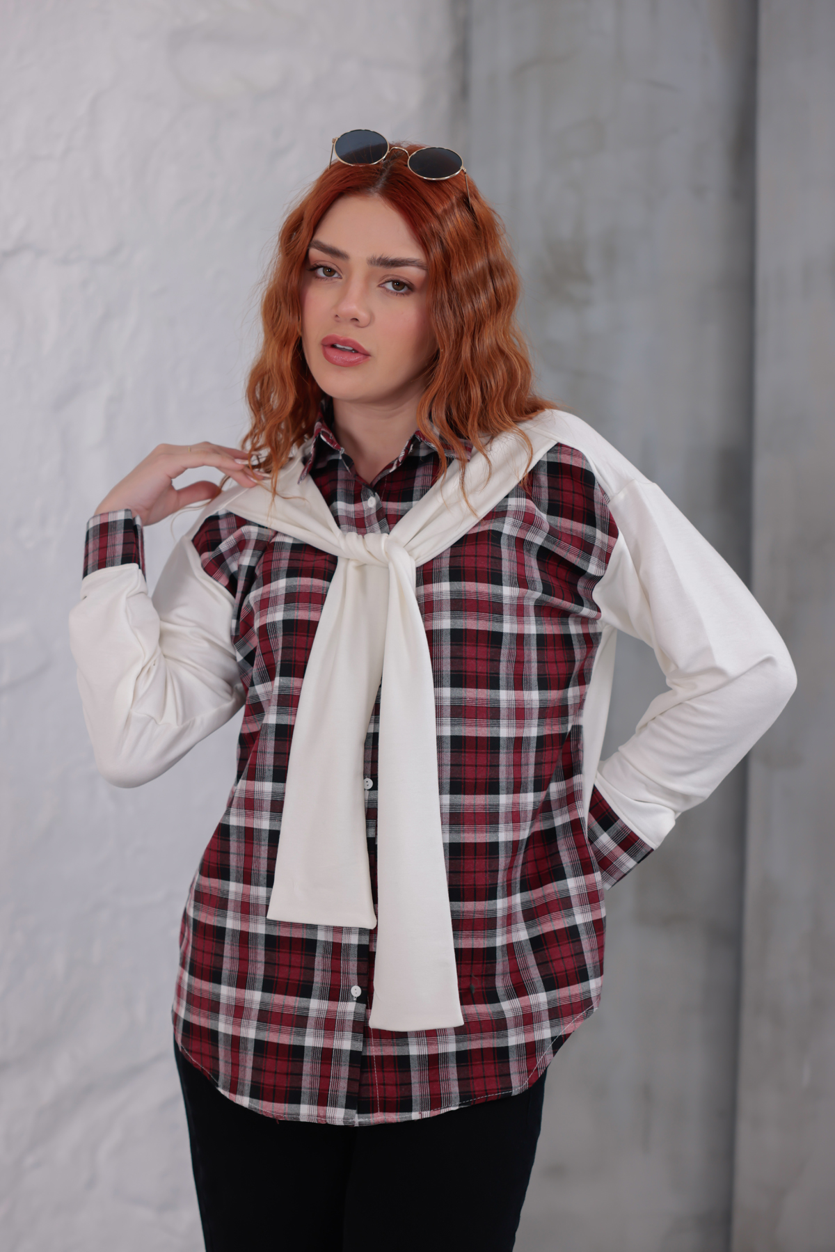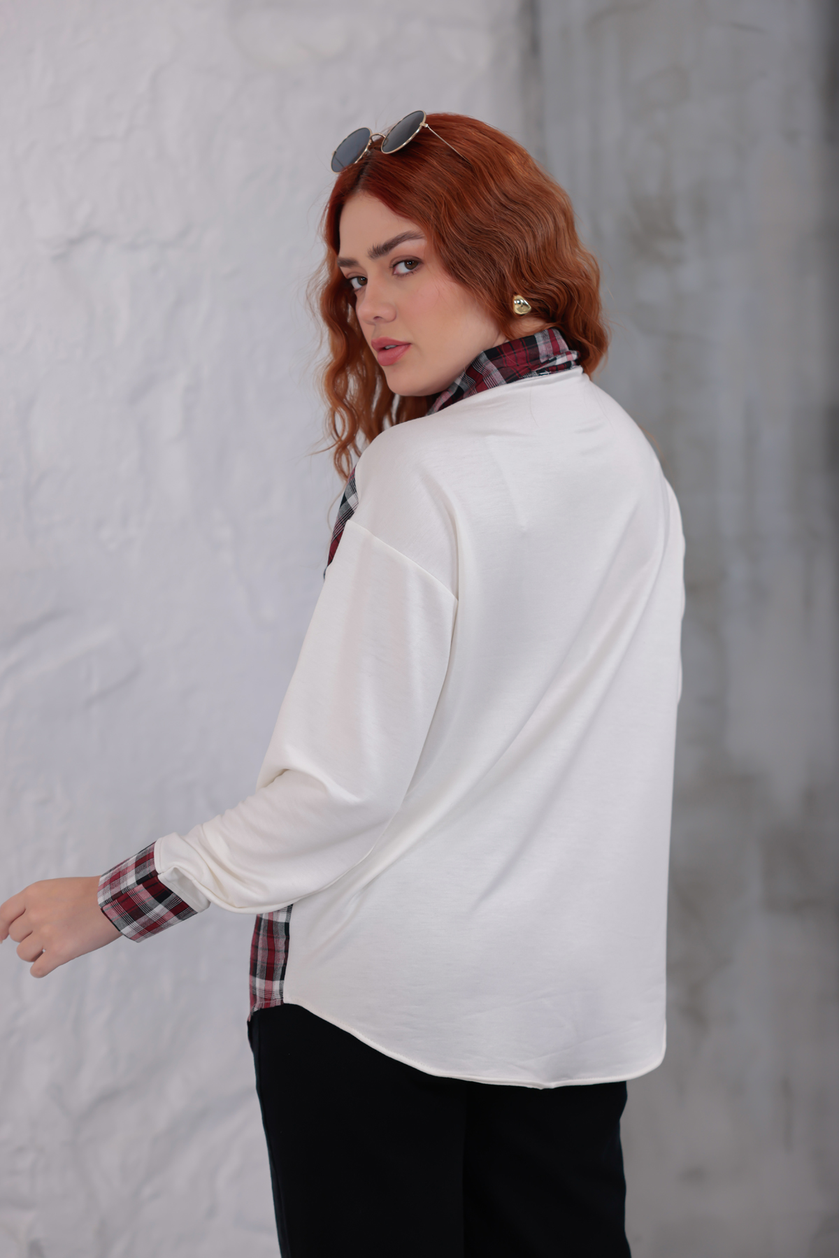 Vurgulu Ekose Gömlek Beyaz - 6450-Beyaz