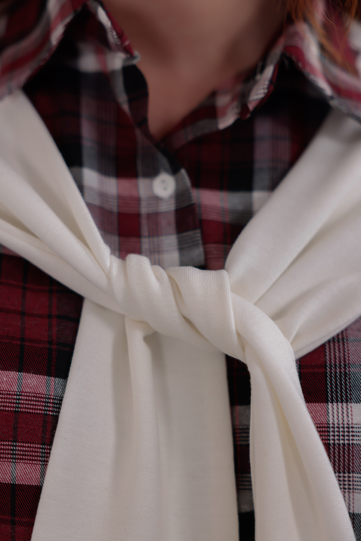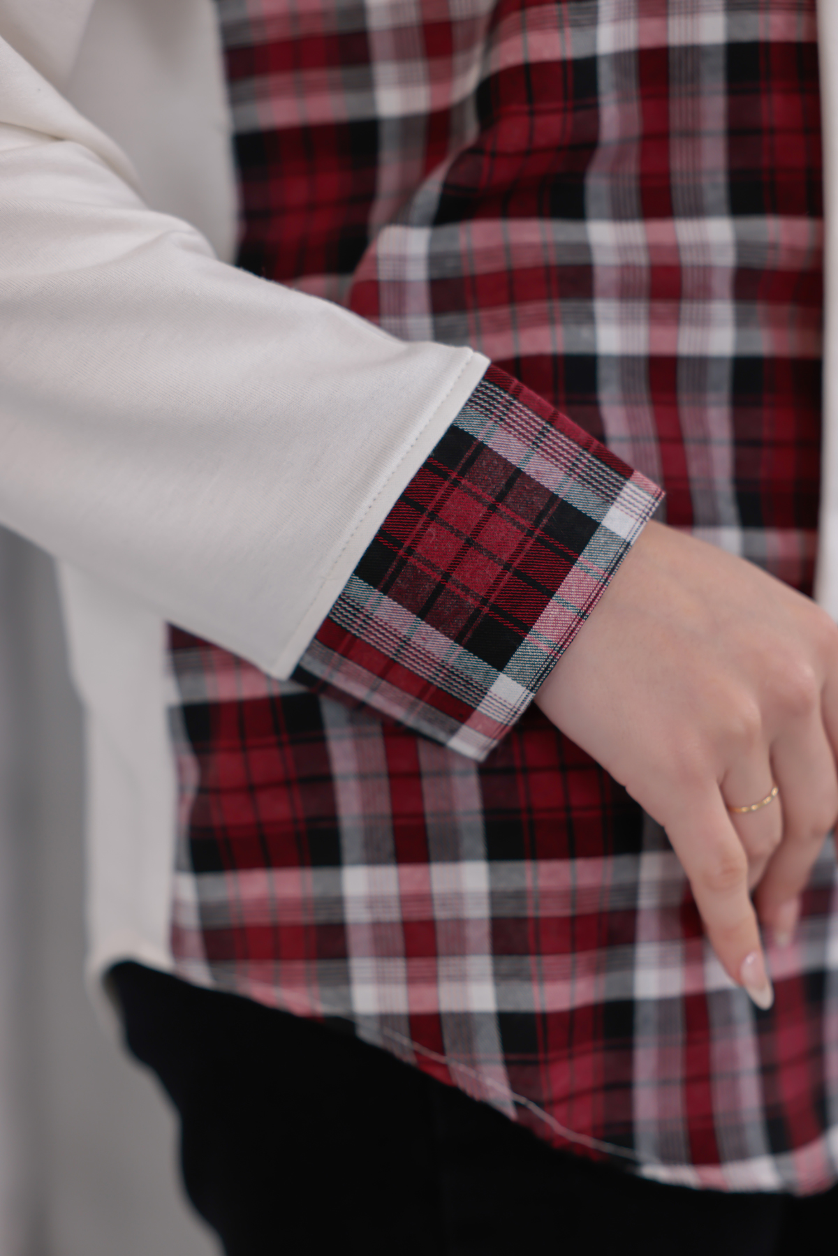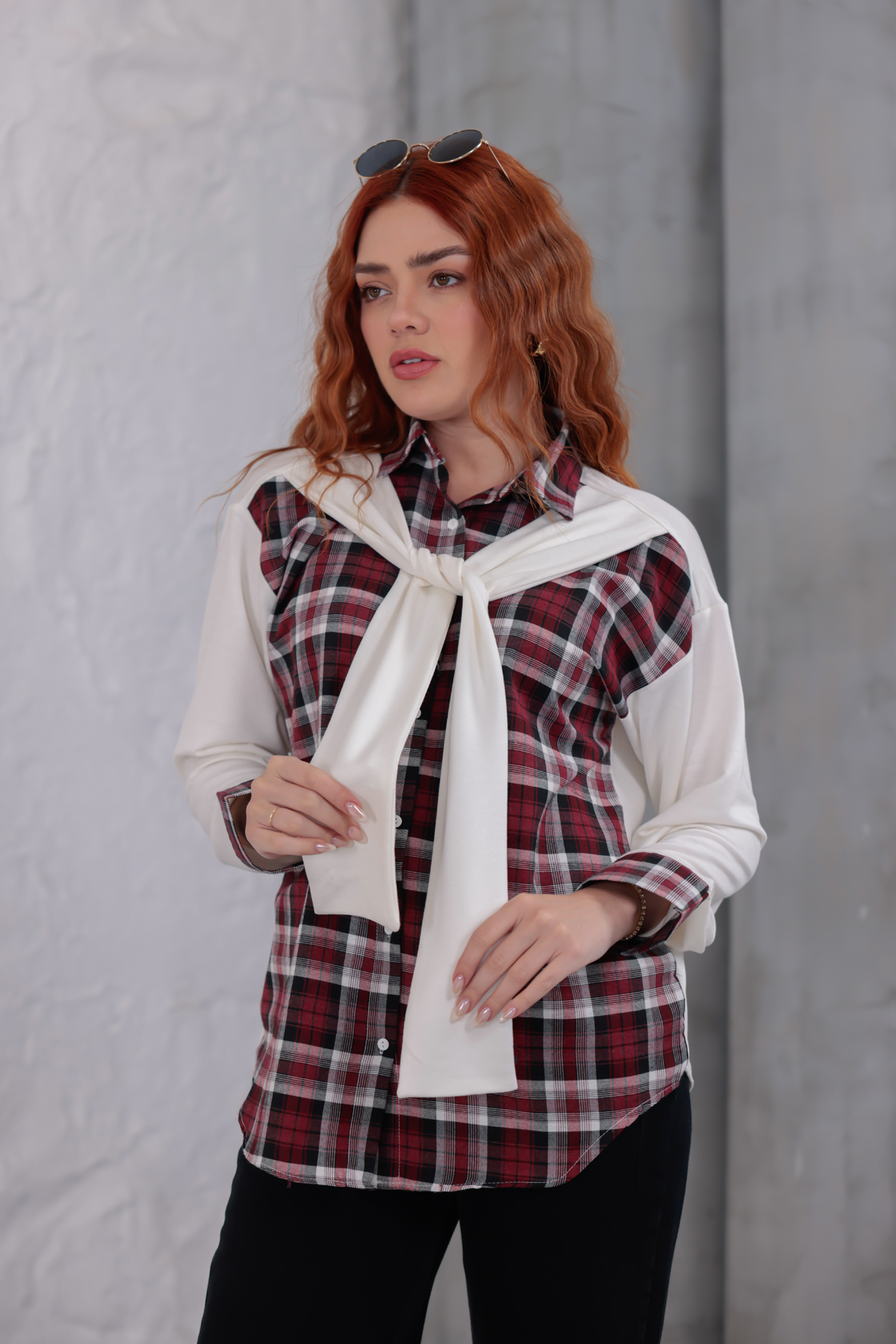 Vurgulu Ekose Gömlek Beyaz - 6450-Beyaz