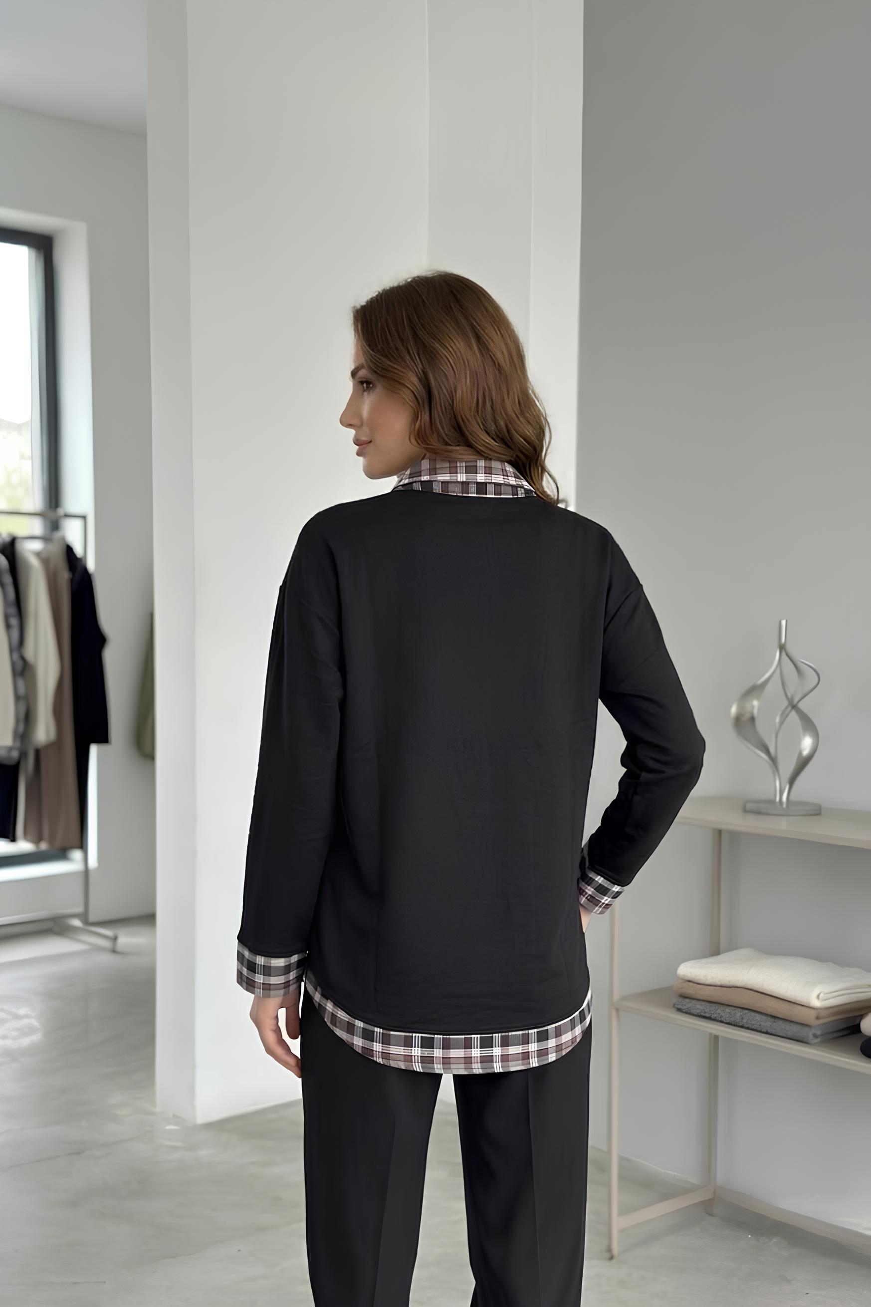 Vurgulu Ekose Gömlek Siyah - 6450-Siyah
