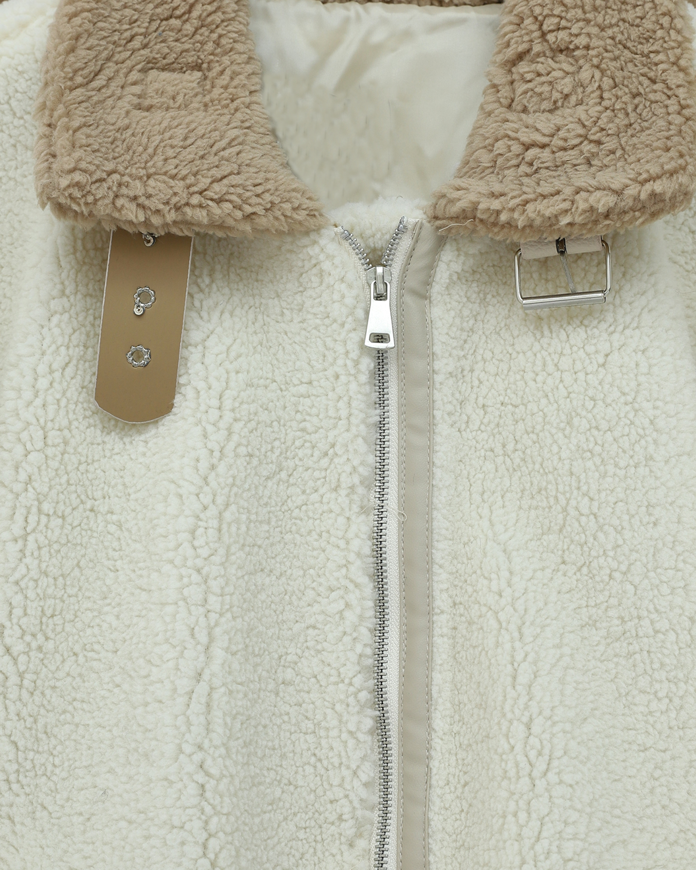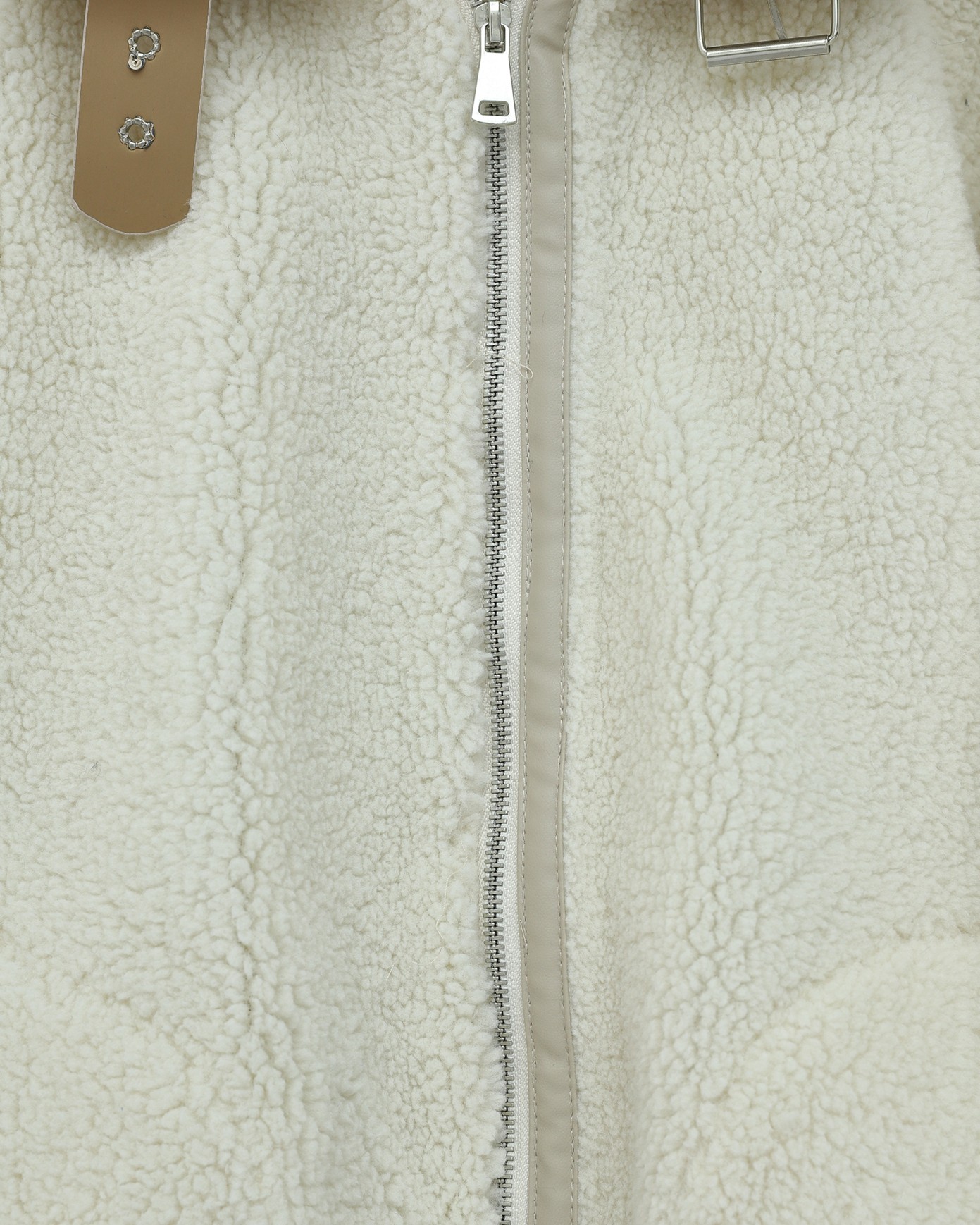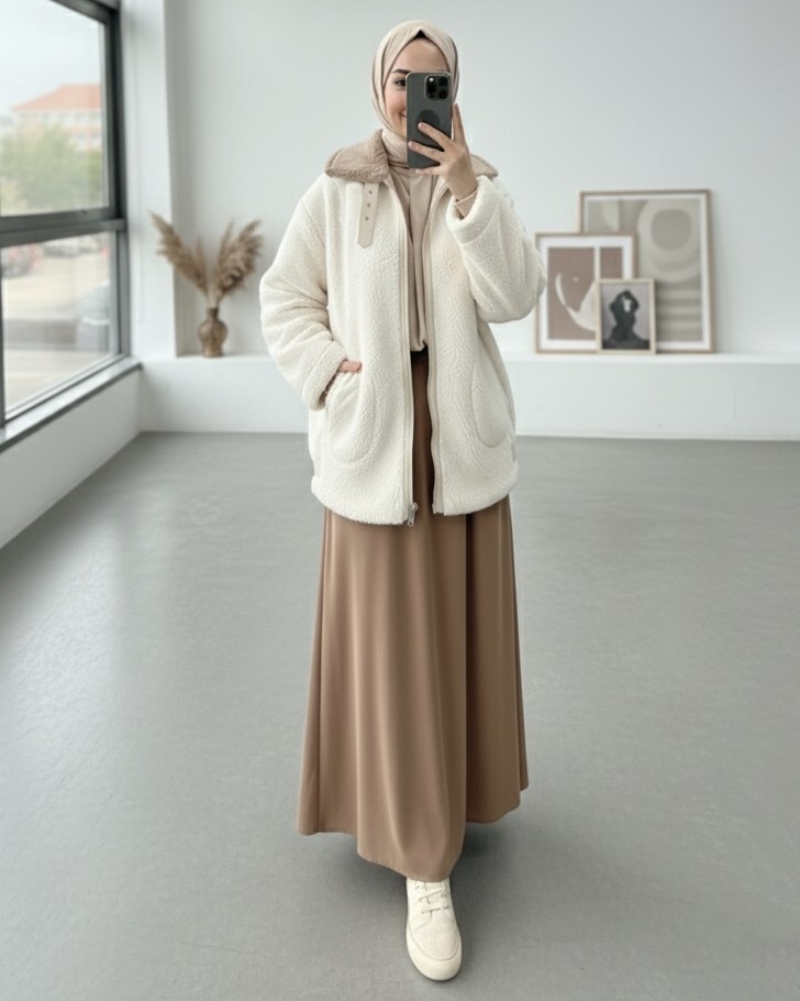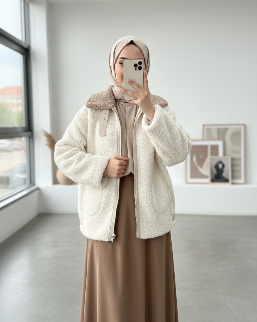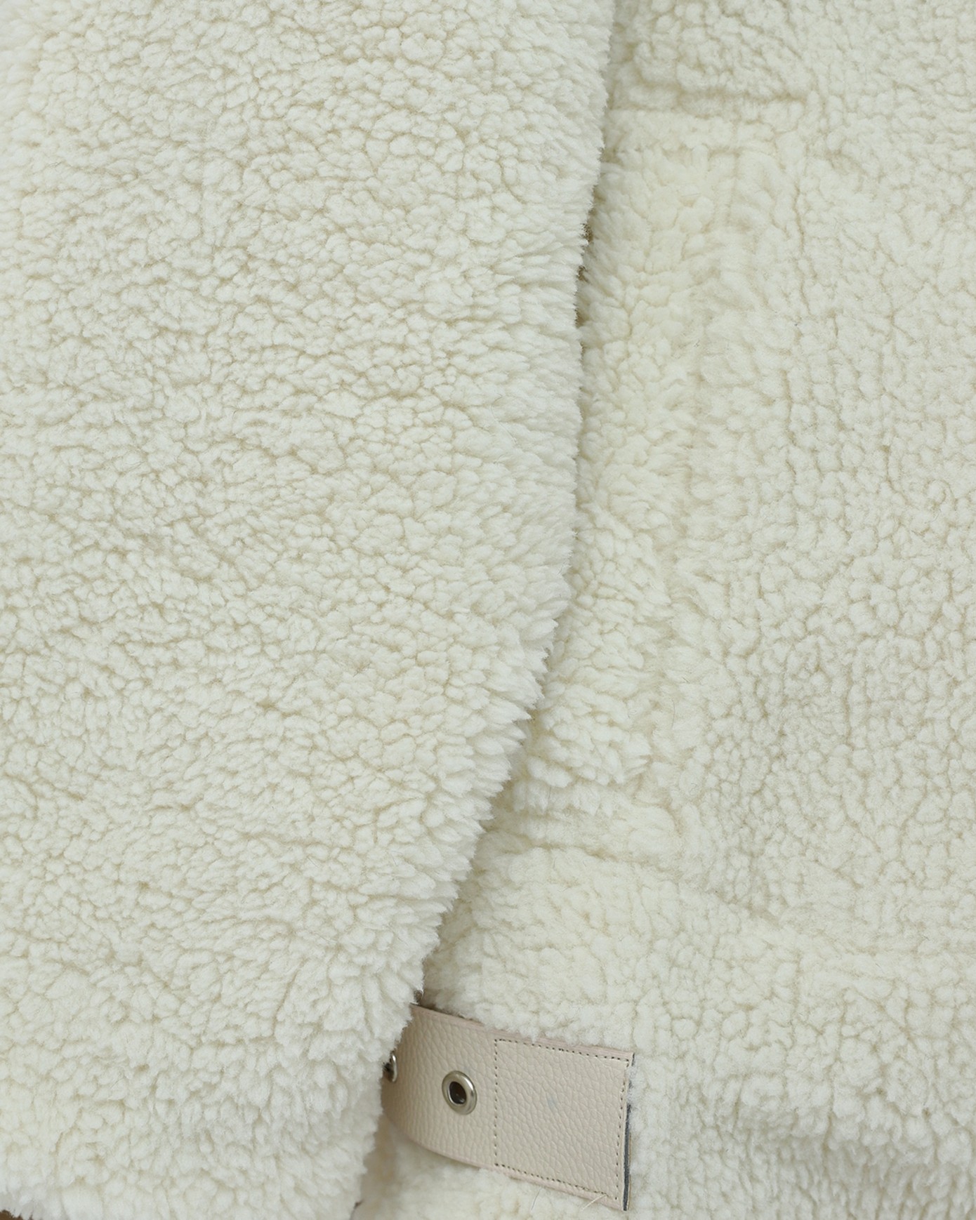 Yakası Garni Detaylı İçi Astarlı Cep Detaylı Peluş Mont -Bej-Bej