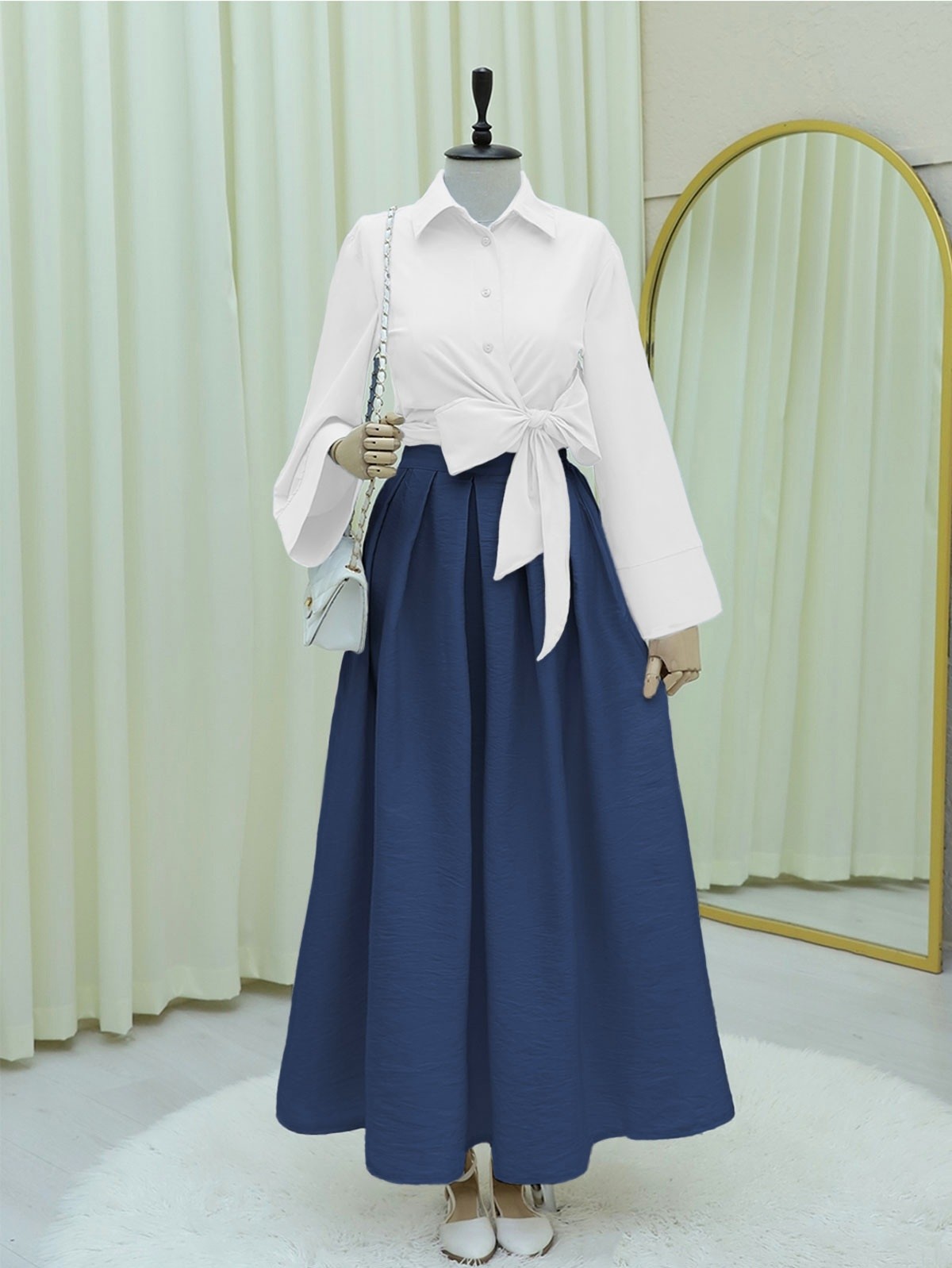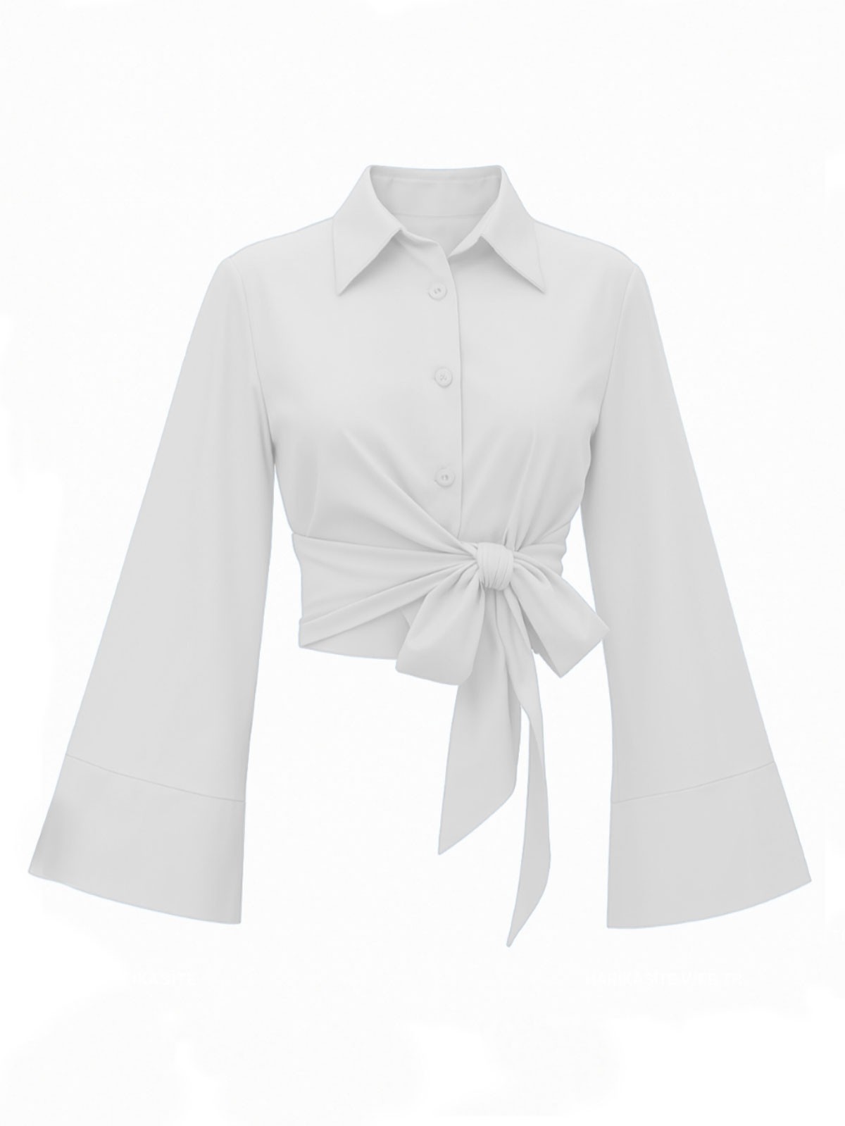 Yan Bağlamalı İspanyol Kol Düğmeli Gömlek -Beyaz-Beyaz
