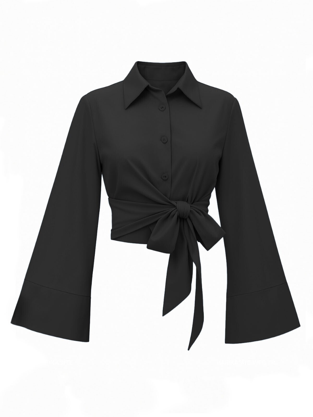 Yan Bağlamalı İspanyol Kol Düğmeli Gömlek -Siyah-siyah