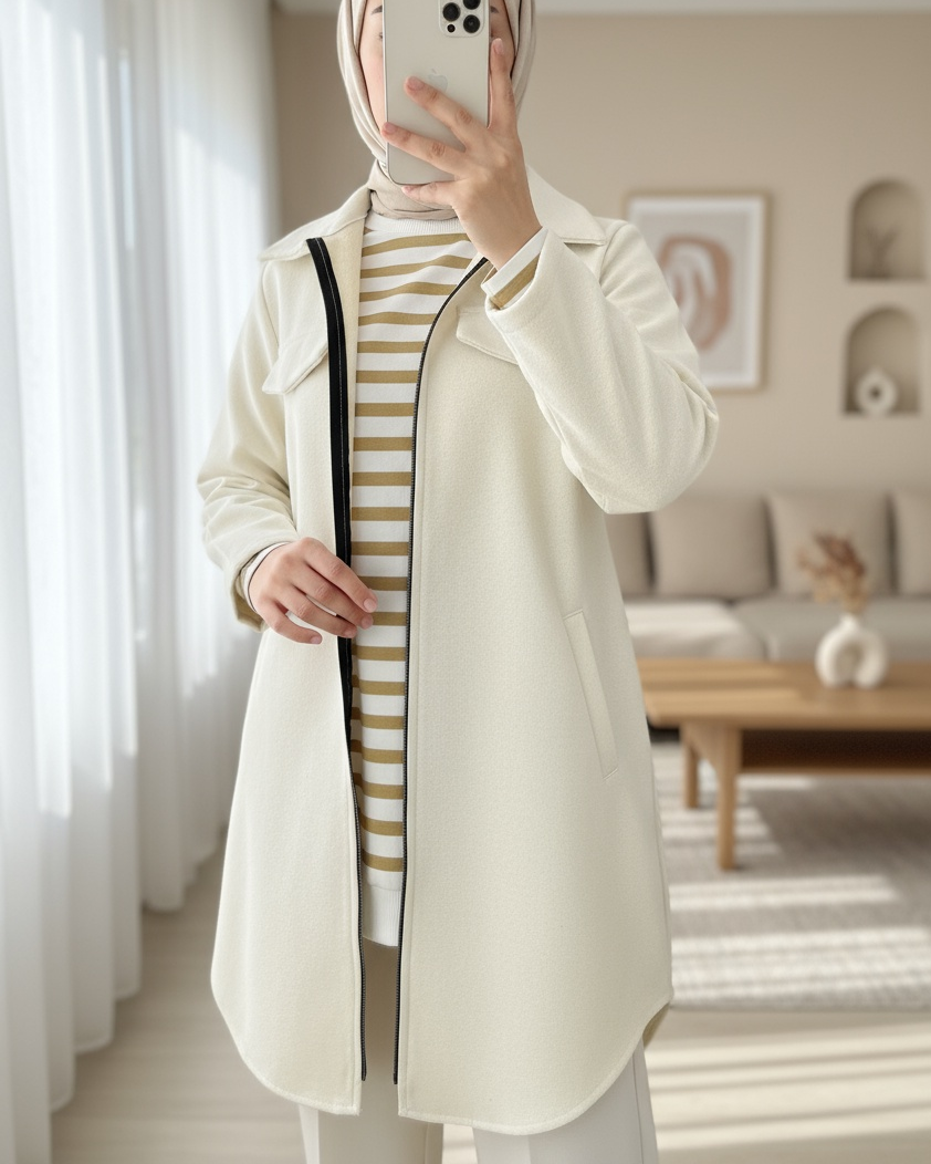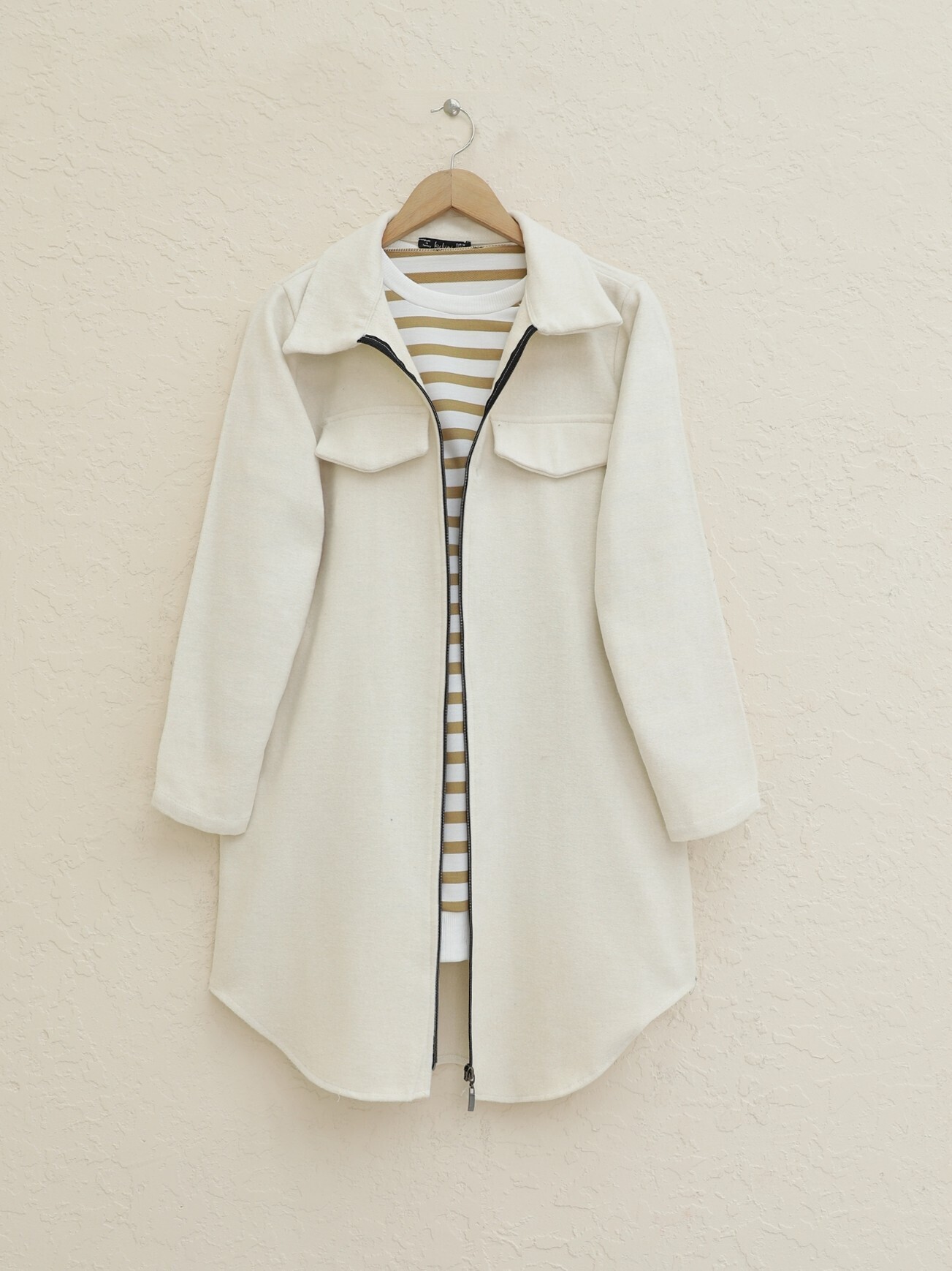 Yan Cepli Fermuarlı Kaşe Kap -Ekru-Ekru