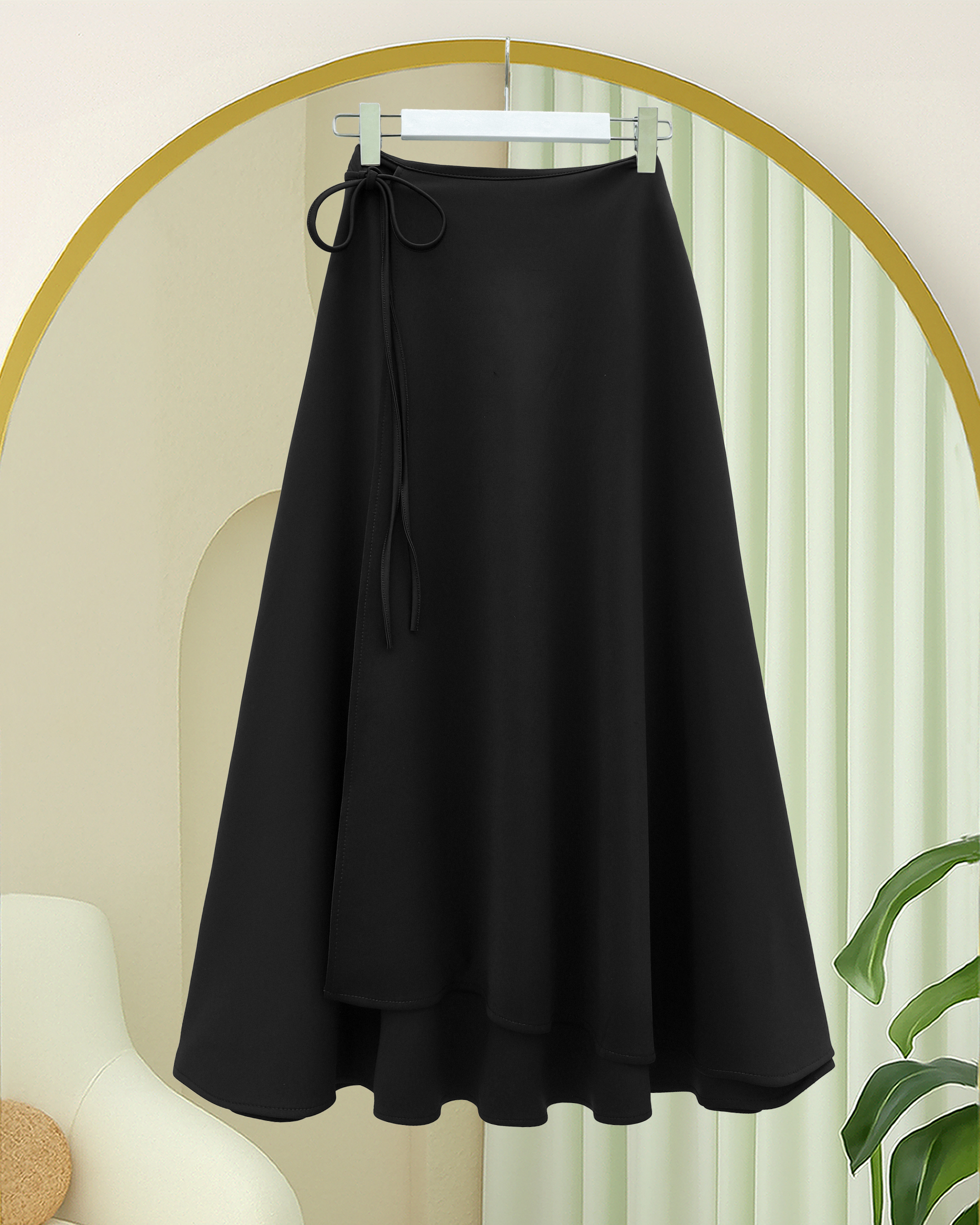 Yandan Bağlama Detaylı Katlı Fermuarlı Scuba Etek -Siyah-siyah
