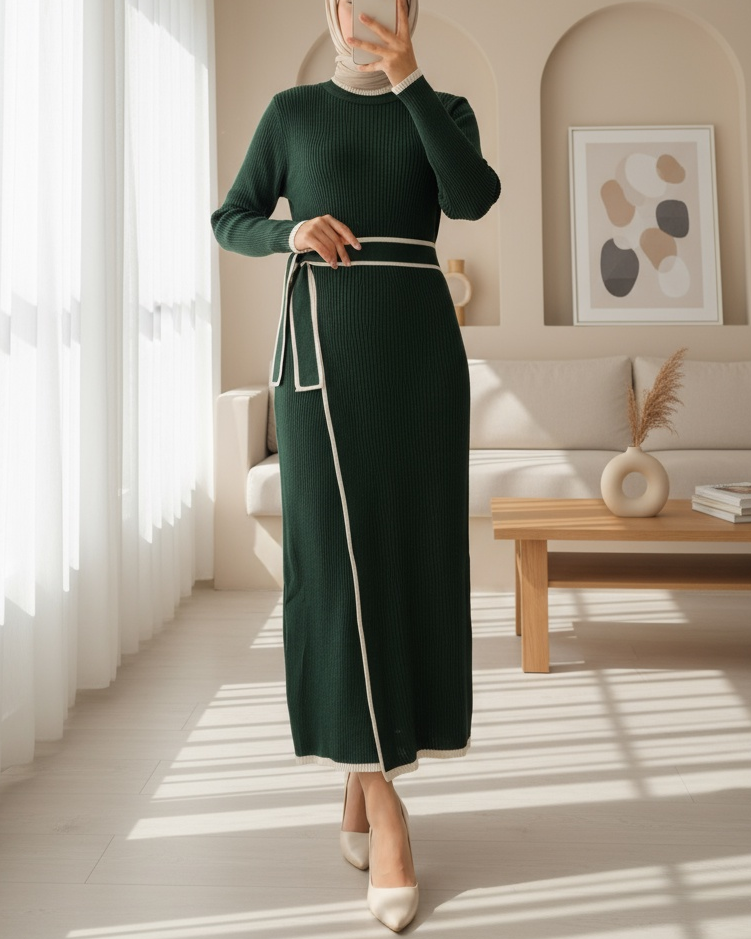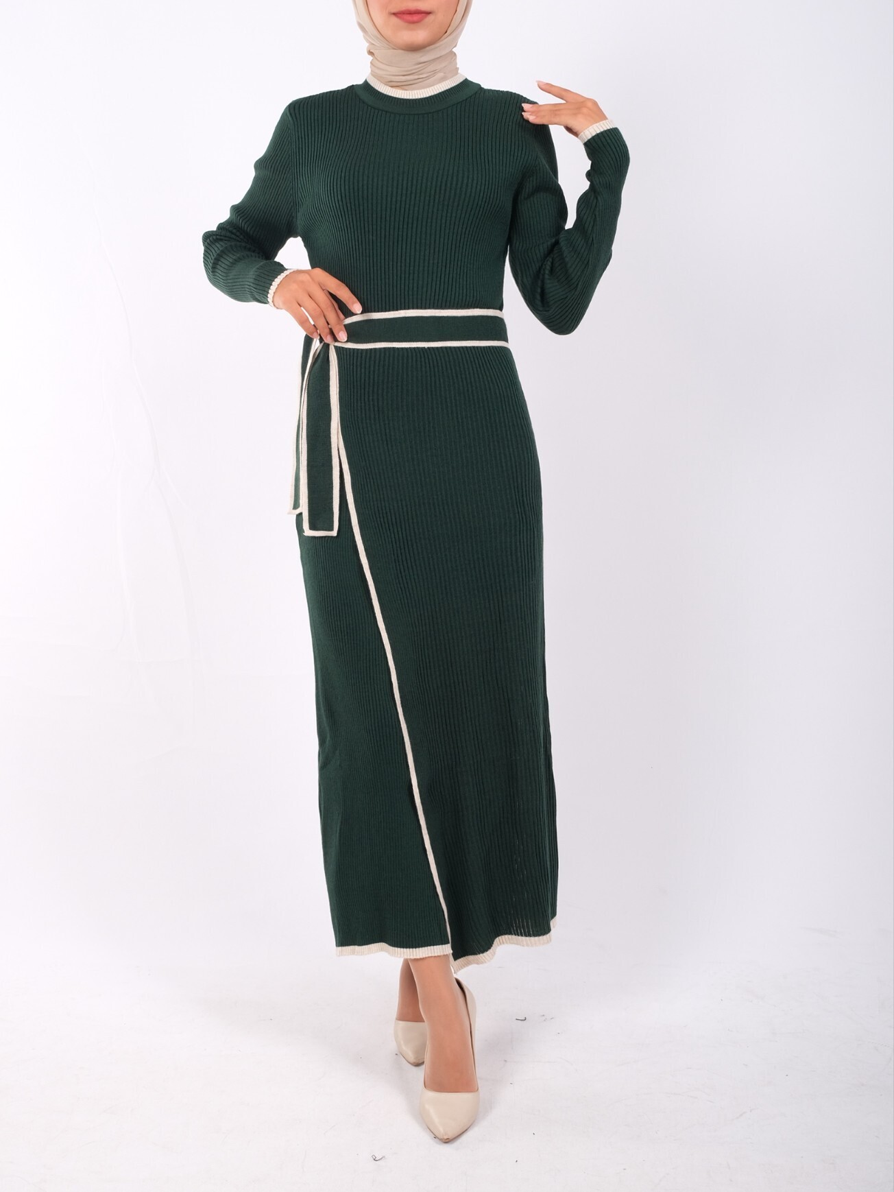 Yandan Bağlamalı Etekli Alerli Triko Elbise -Zümrüt-Zümrüt