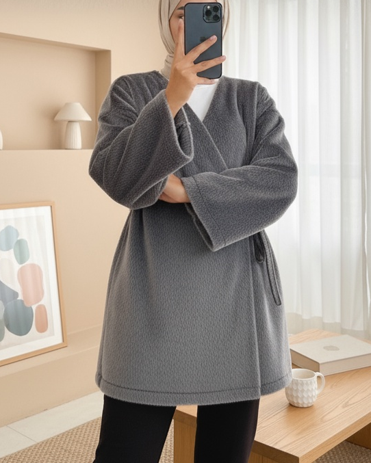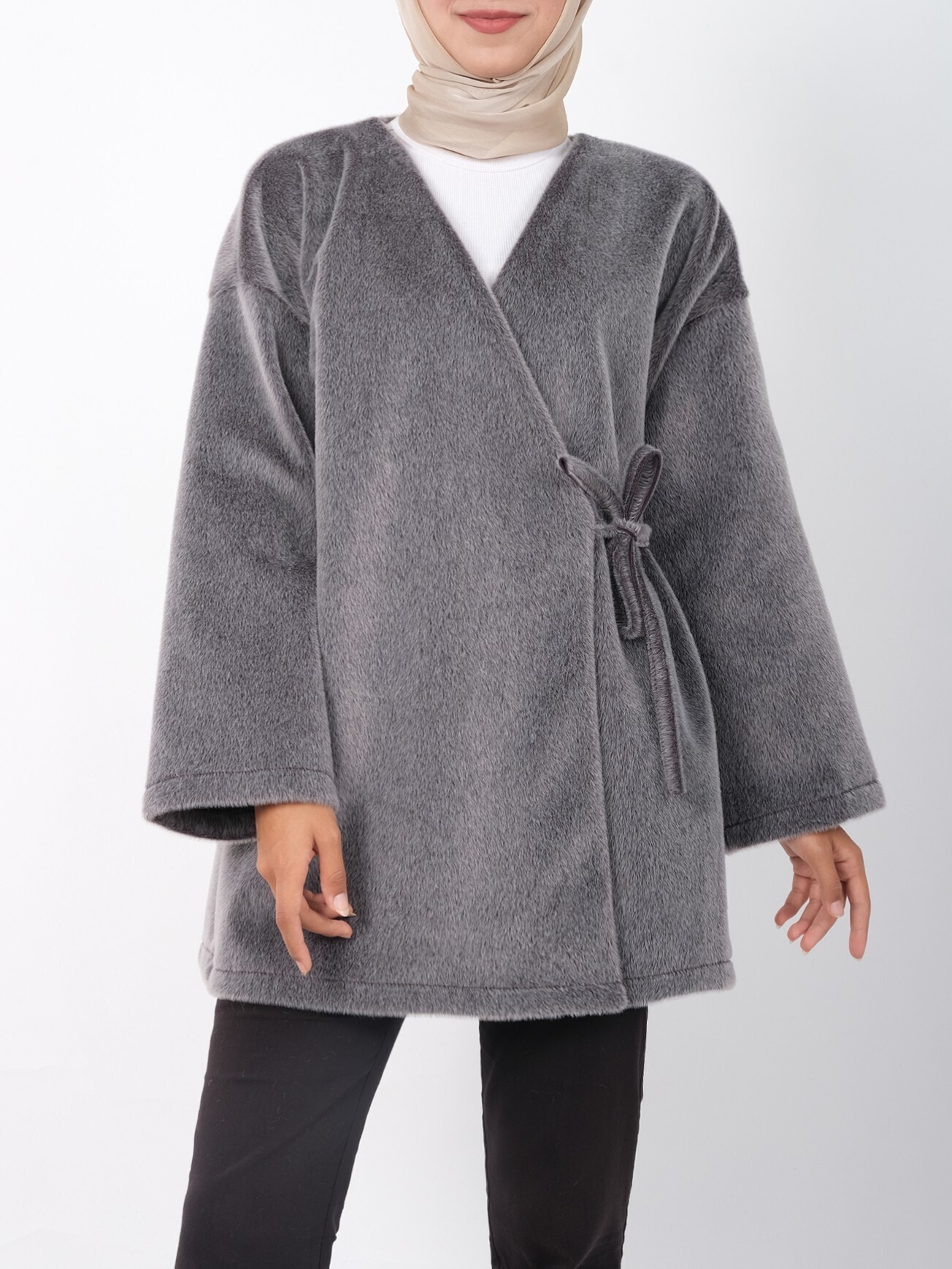 Yandan Bağlamalı Kürklü Ceket -Füme-Füme