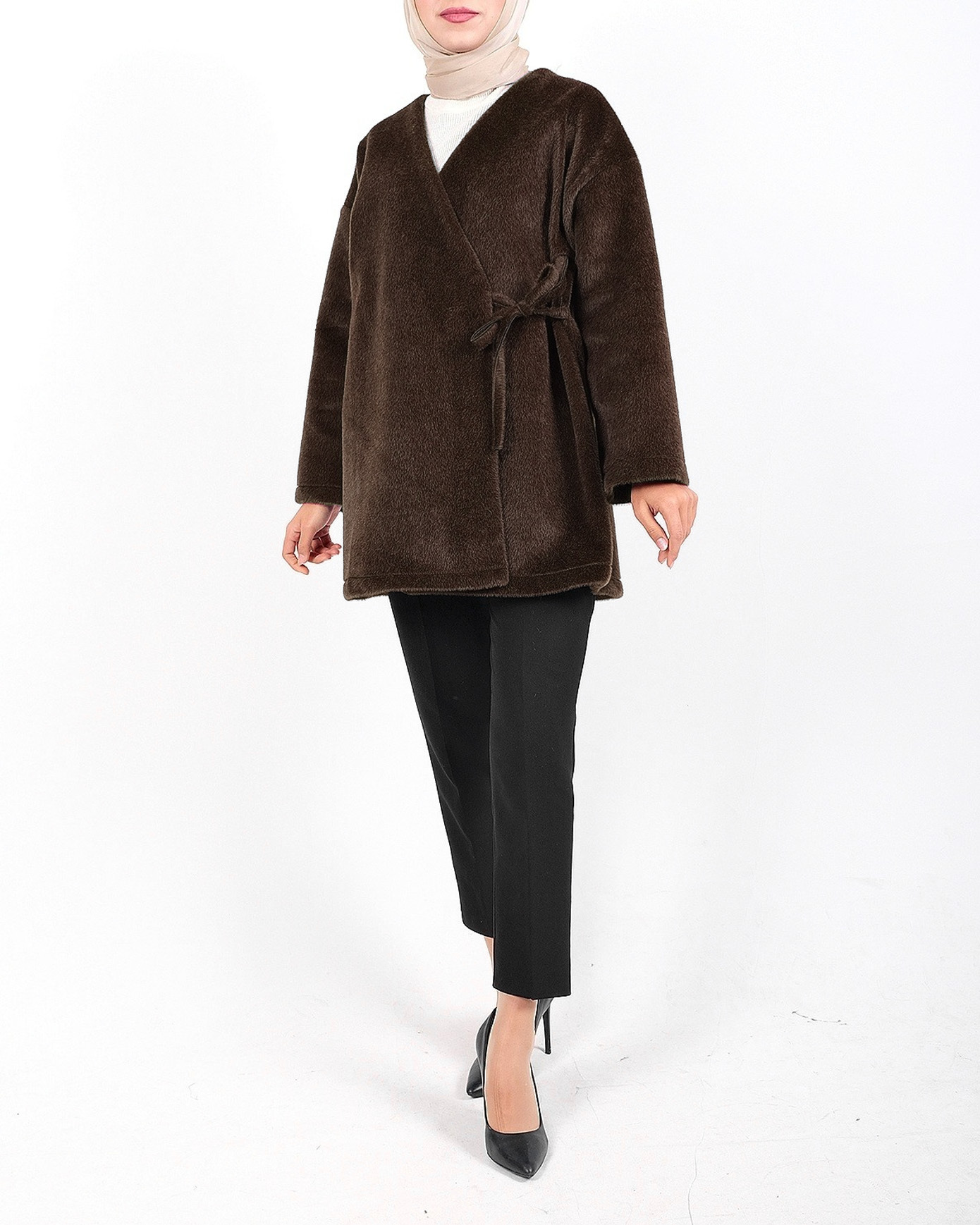 Yandan Bağlamalı Kürklü Ceket -Toprak-Toprak