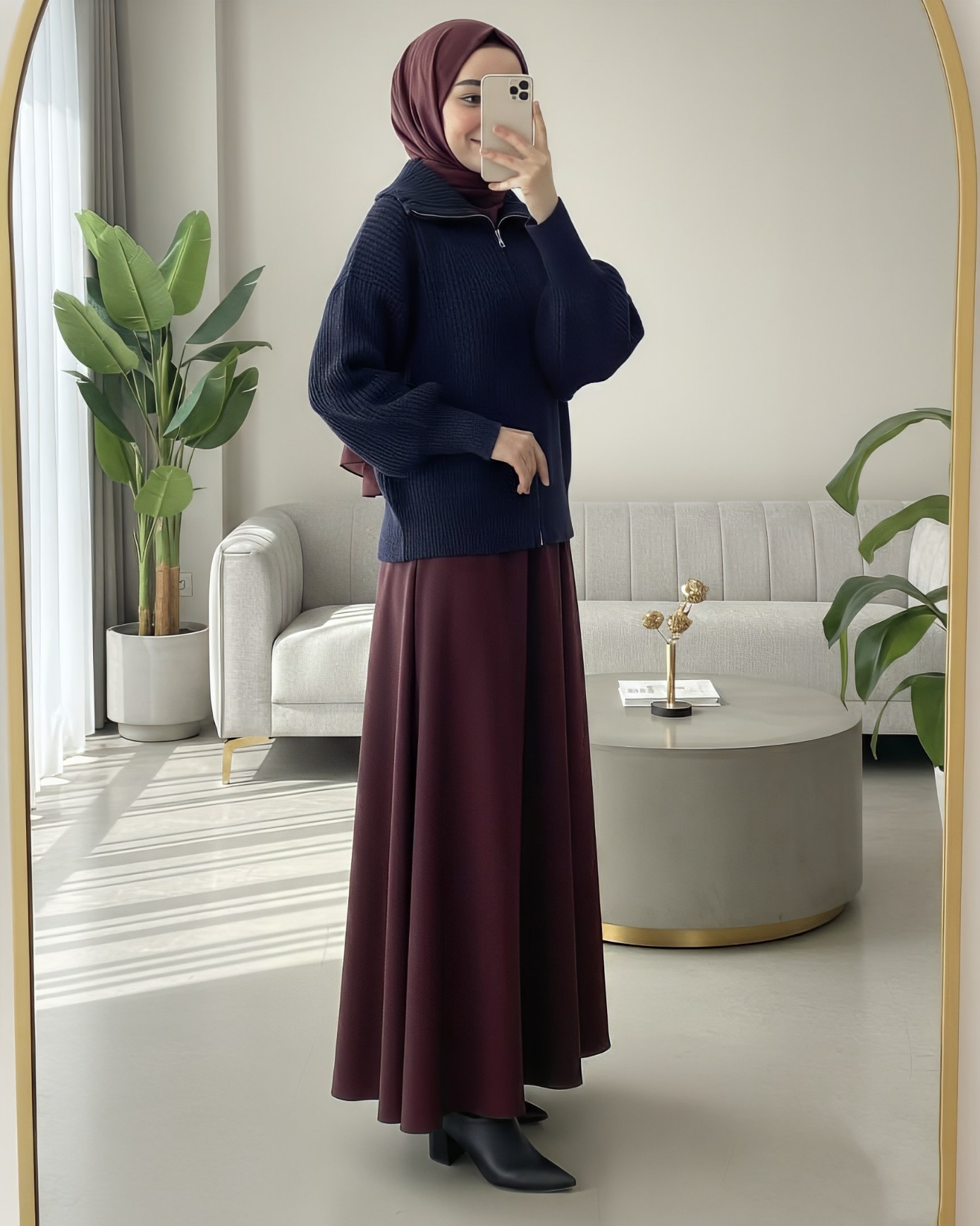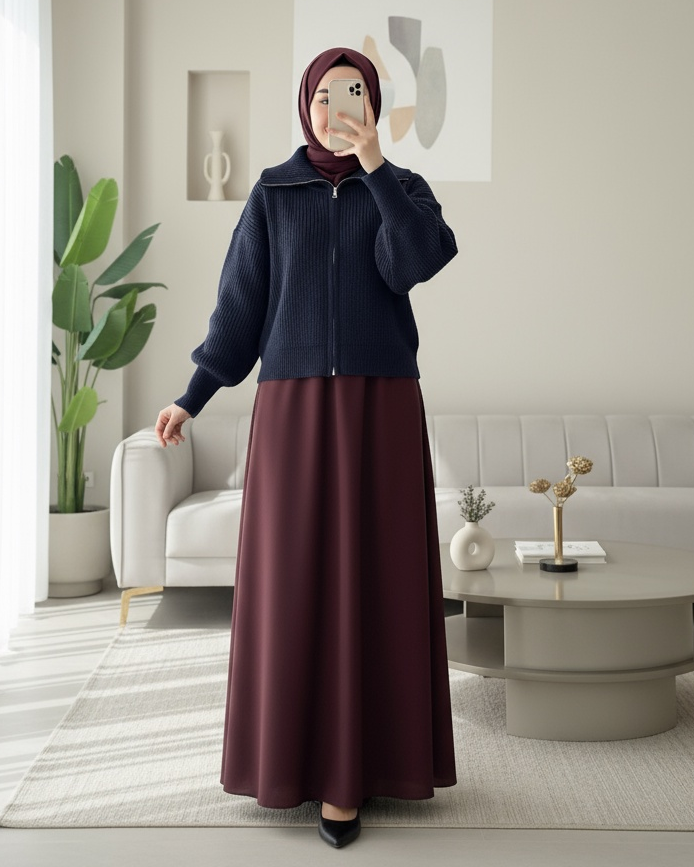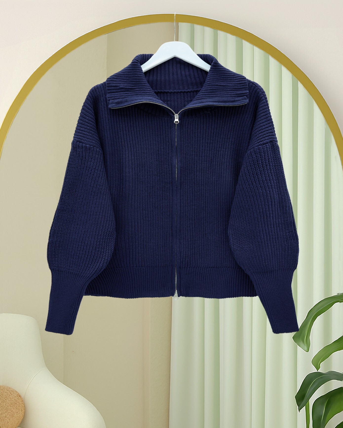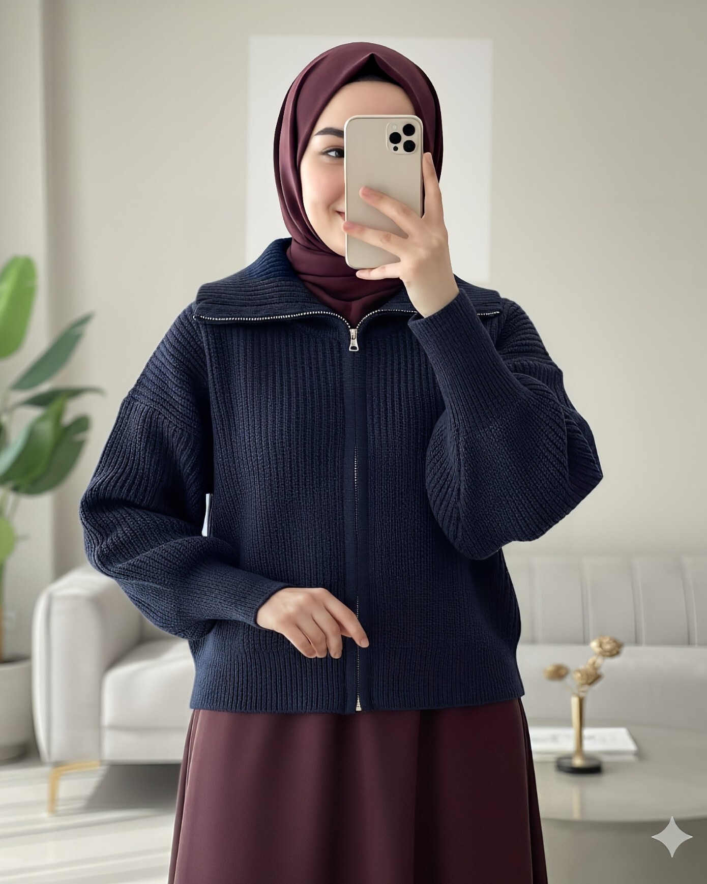 Yarım Boğazlı Fermuarlı Triko Hırka -Laci-Lacivert