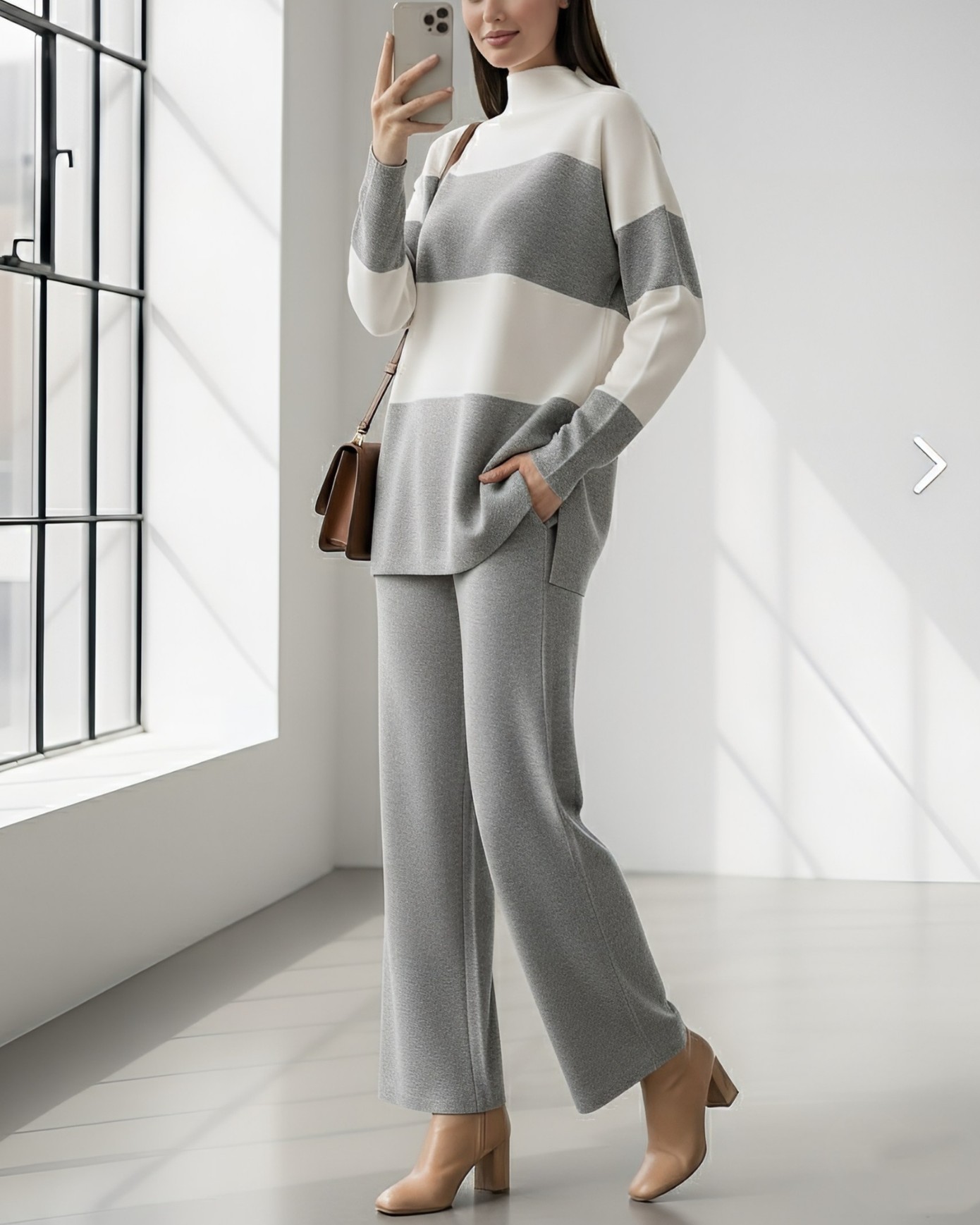 Yarım Boğazlı Triko Takım -Gri-Gri