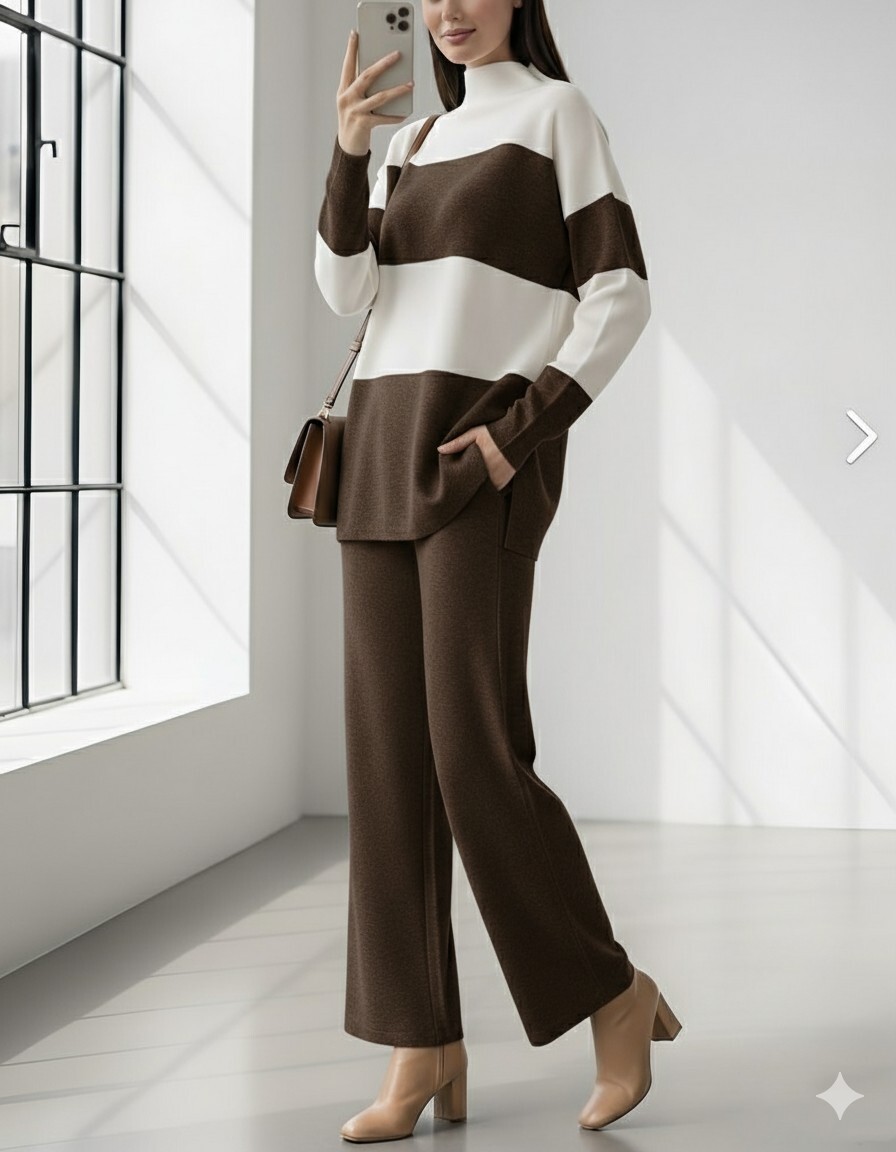 Yarım Boğazlı Triko Takım -K. Kahve-K. Kahve