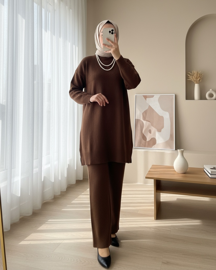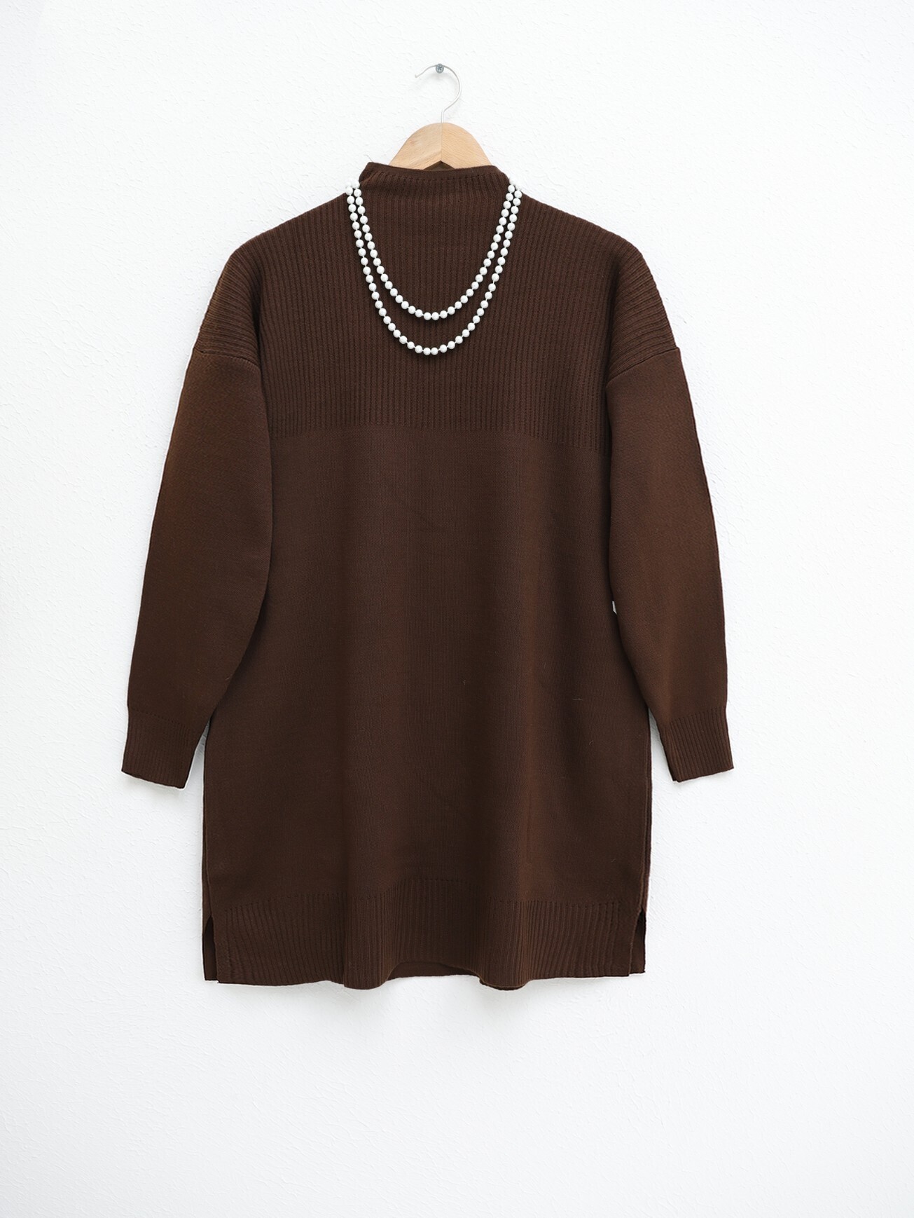 Yarım Boğazlı Triko Takım -Kahve-Kahve