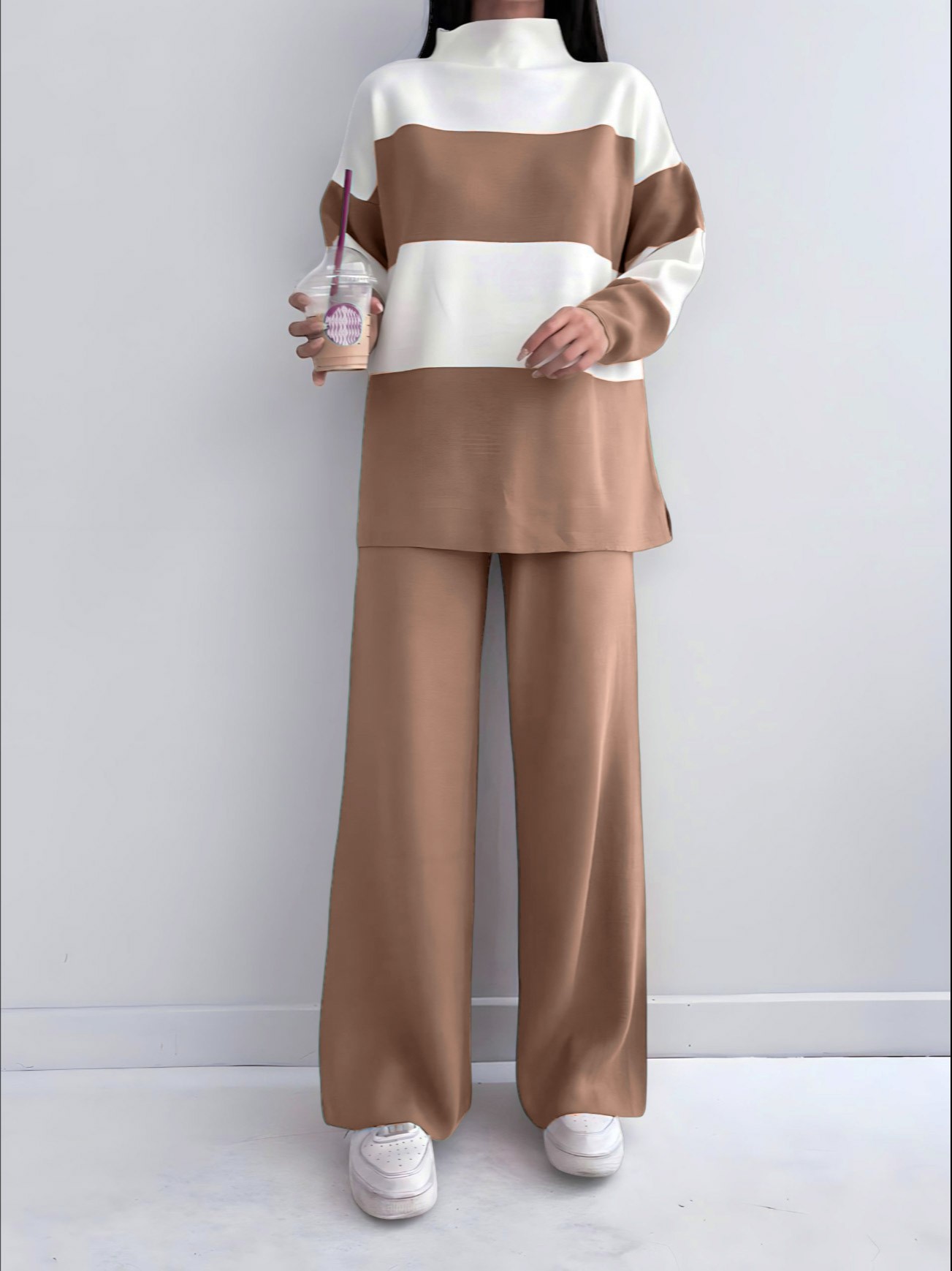 Yarım Boğazlı Triko Takım -Taba-Taba
