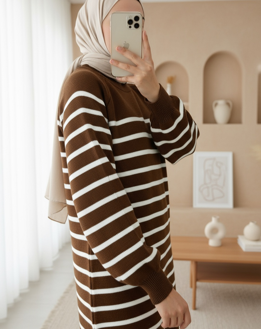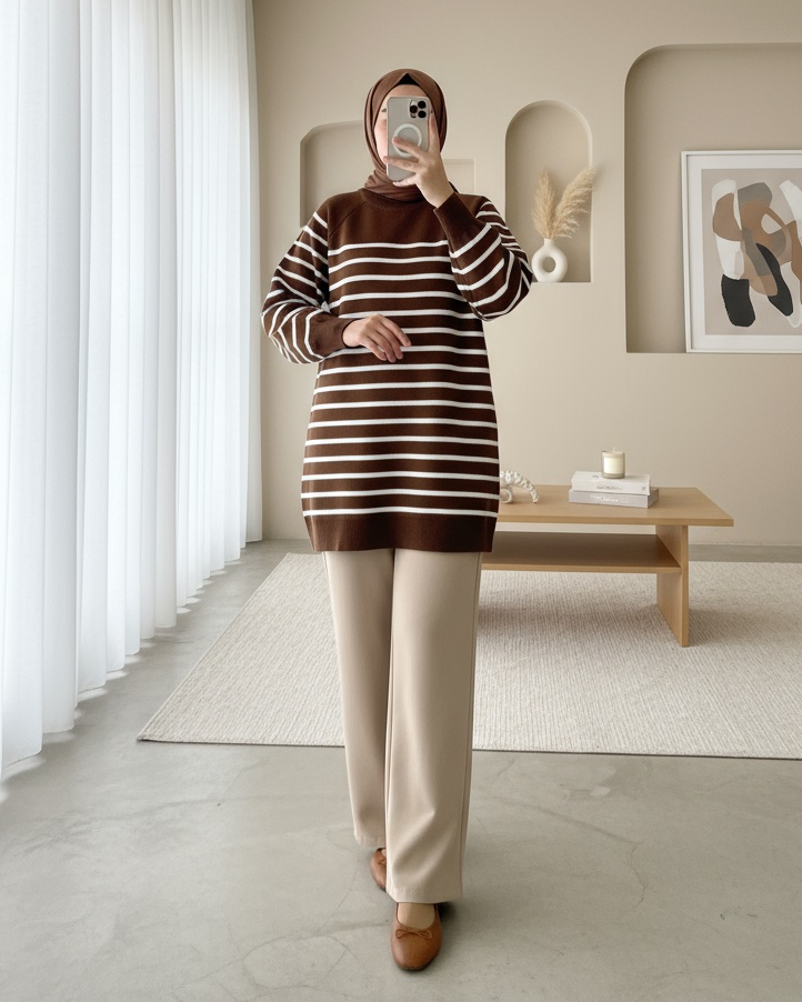 Yarım Boğazlı Triko Tunik -Kahve-Kahve