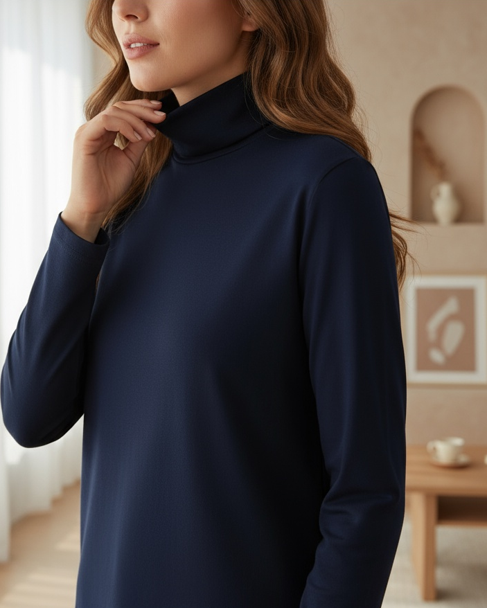 Yarım Boğazlı Uzun Kollu Bluz -Laci-Lacivert
