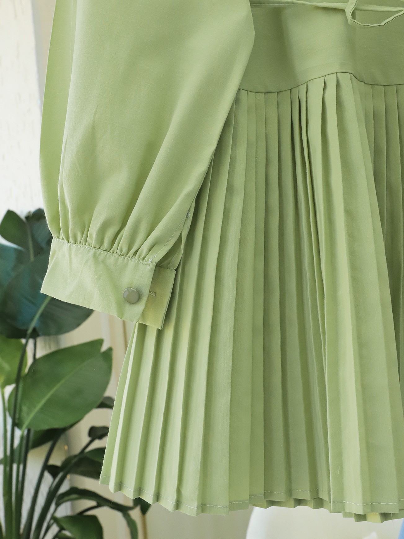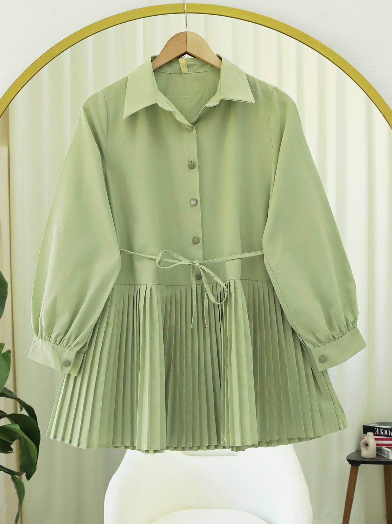 Yarım Düğmeli Beli Bağlamalı Piliseli Gömlek -A.Yeşil-A.Yeşil