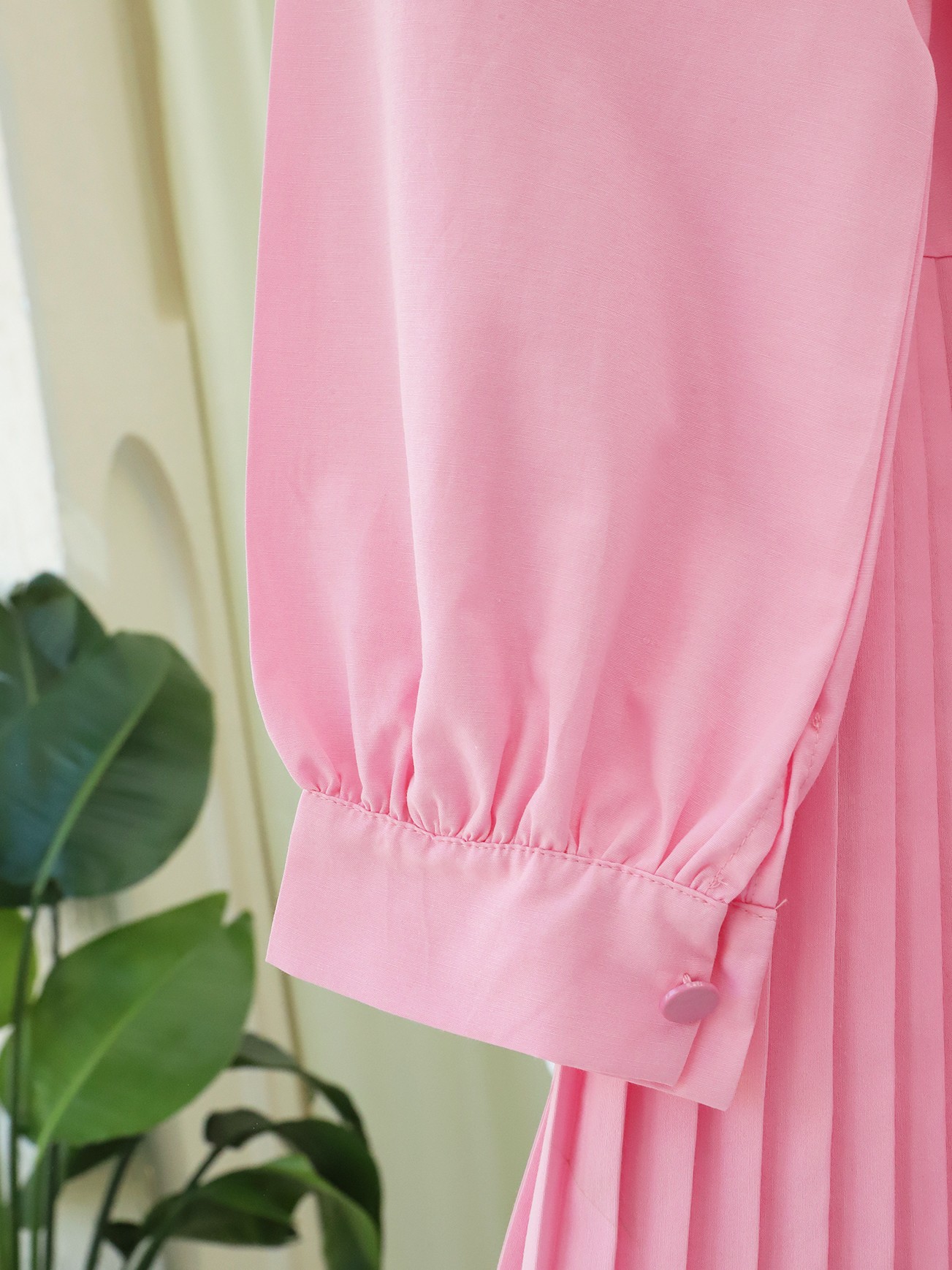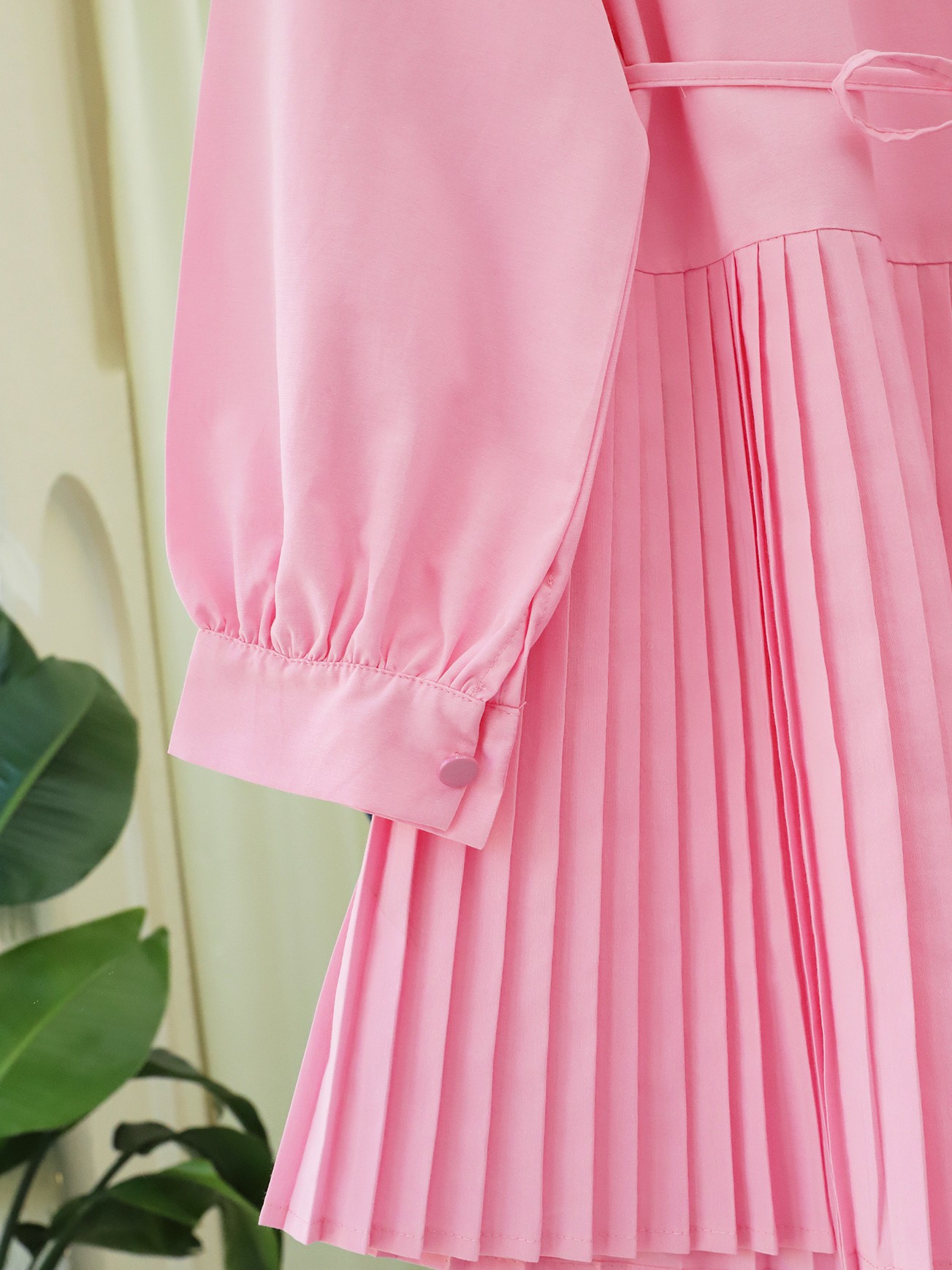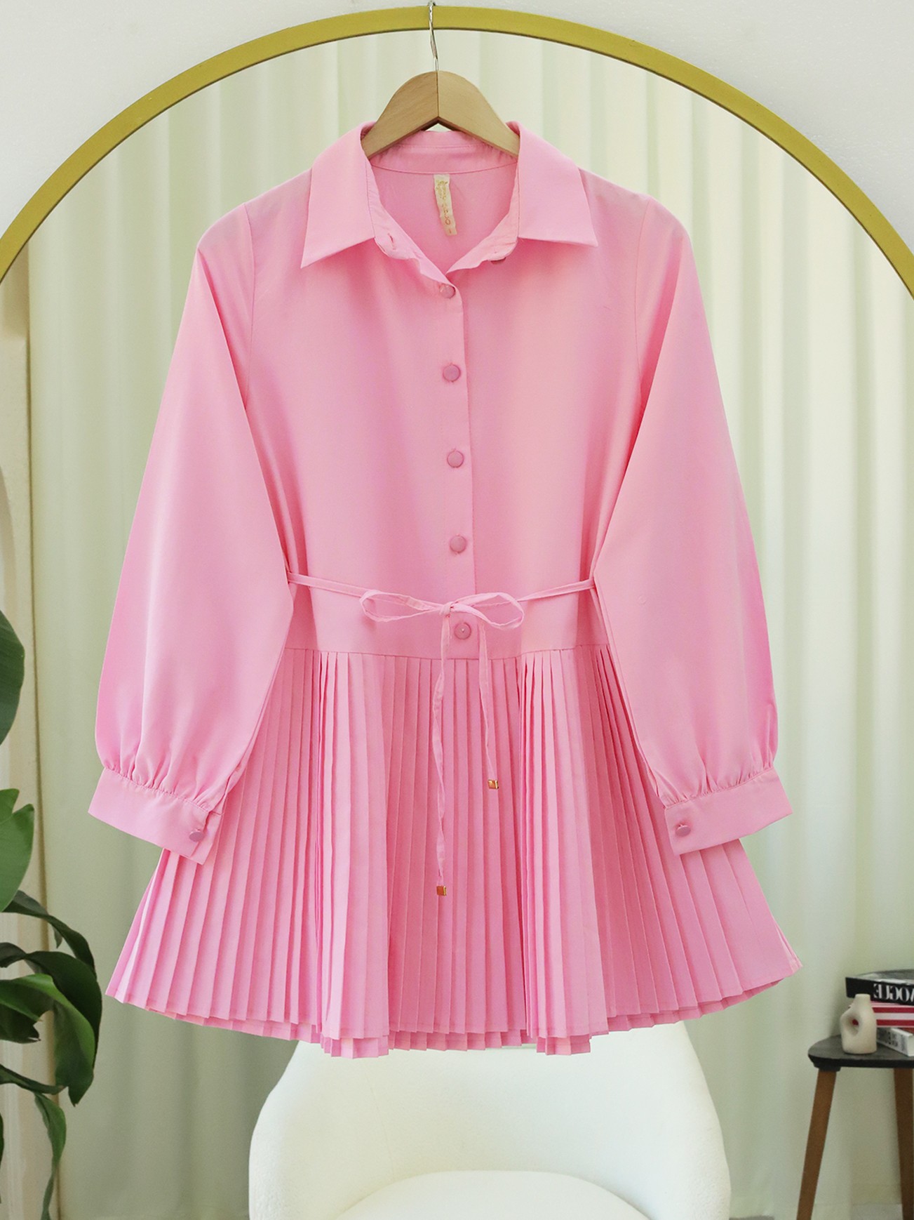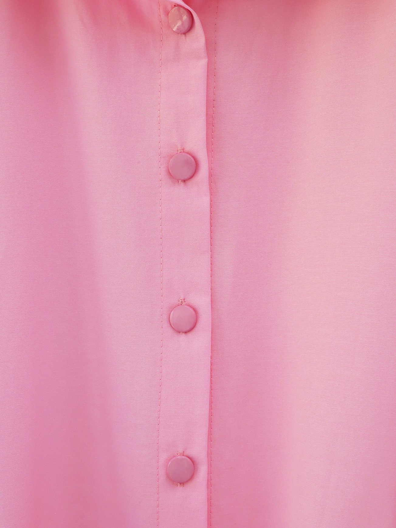 Yarım Düğmeli Beli Bağlamalı Piliseli Gömlek -Pembe-Pembe