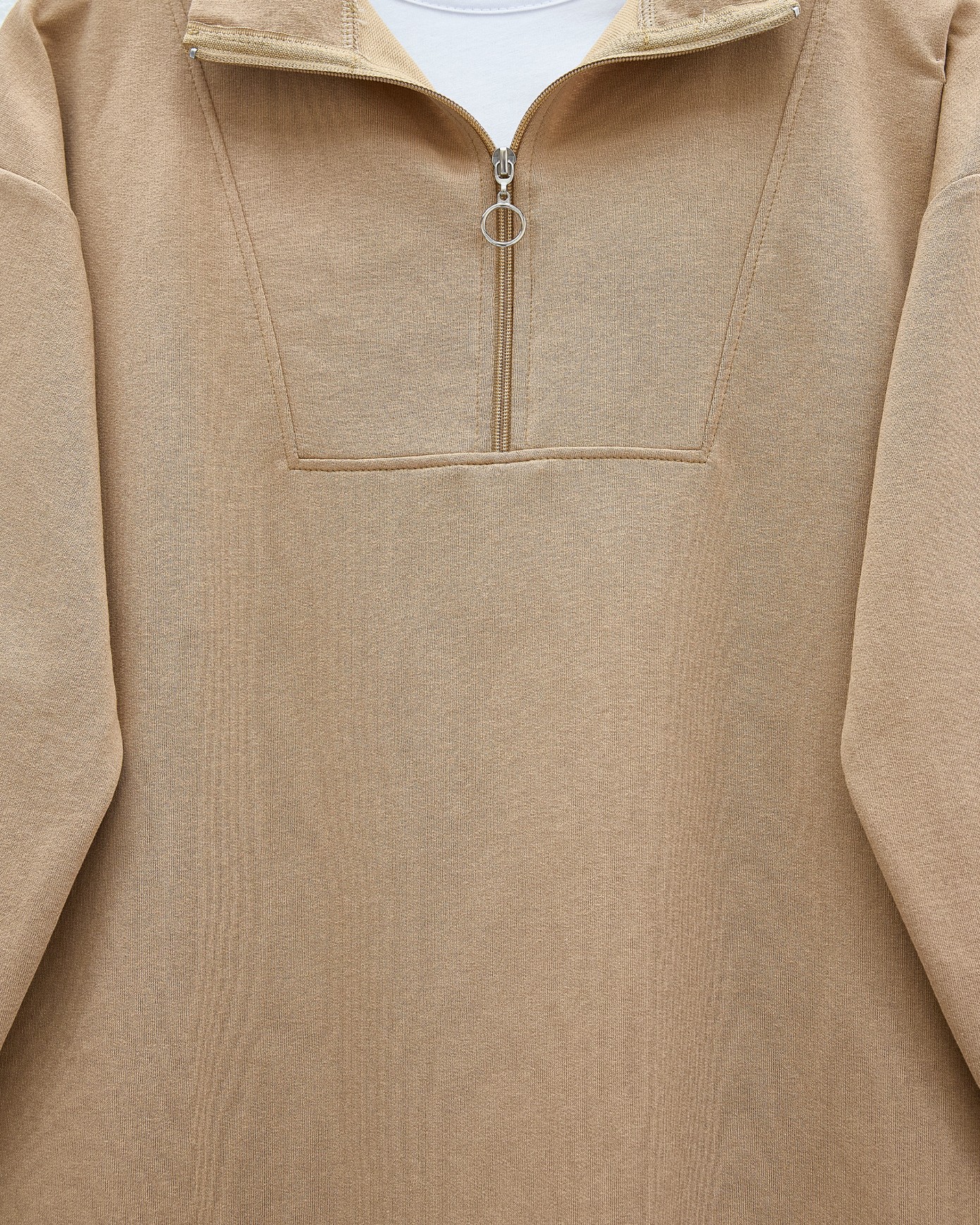 Yarım Fermuarlı Boğazlı Penye Takım -Vizon-Vizon