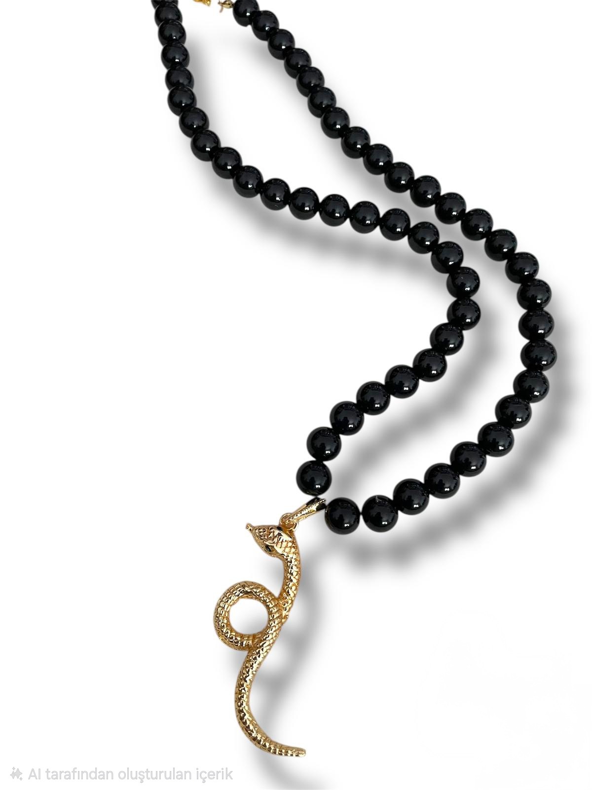 Yılan Aksesuarlı Kolye -Siyah-siyah