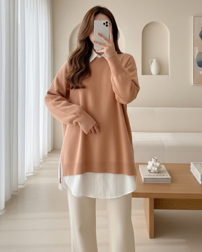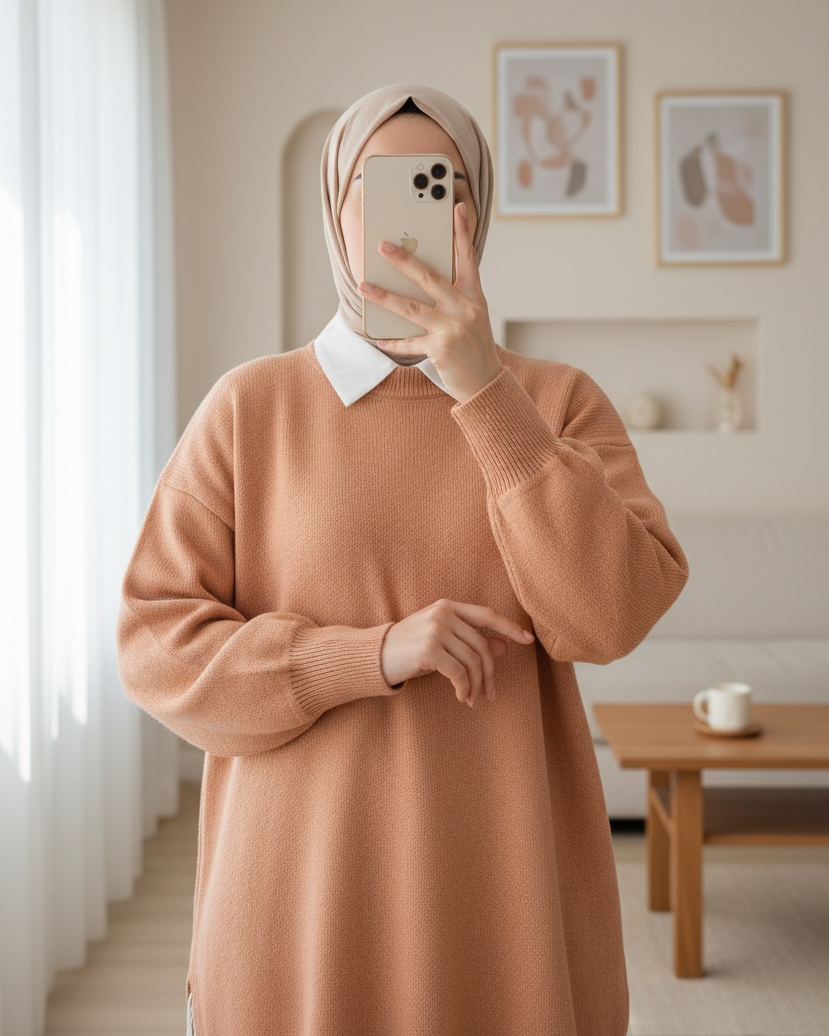 Yırtmacı Püsküllü Triko Kazak -Vizon-Vizon