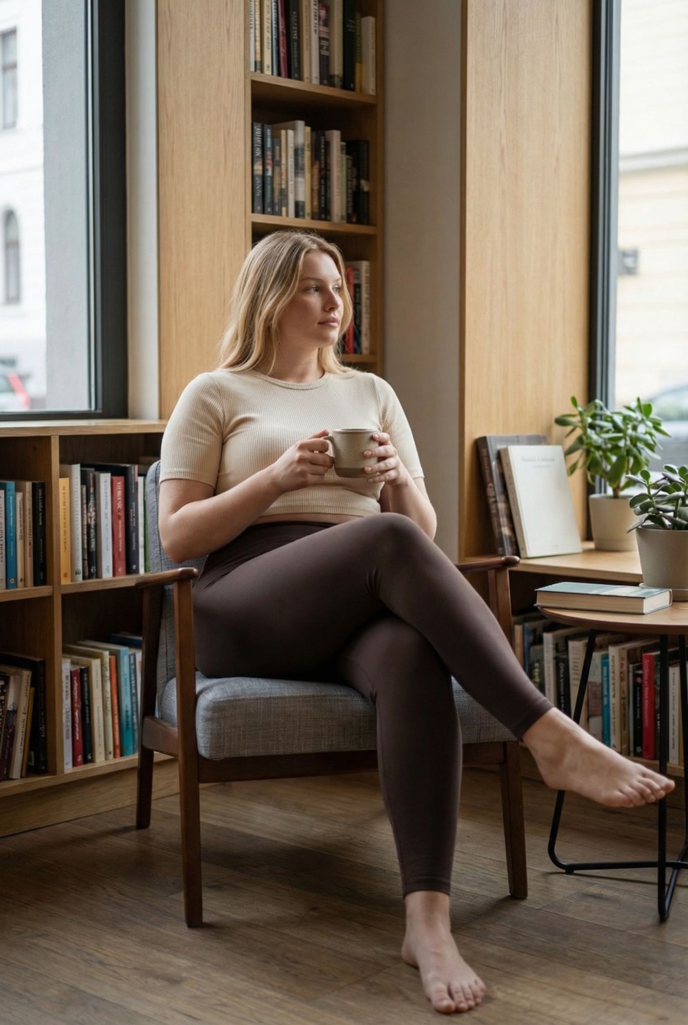 Yüksek Bel Büyük Boy Tayt Kahve - 2133-Kahve