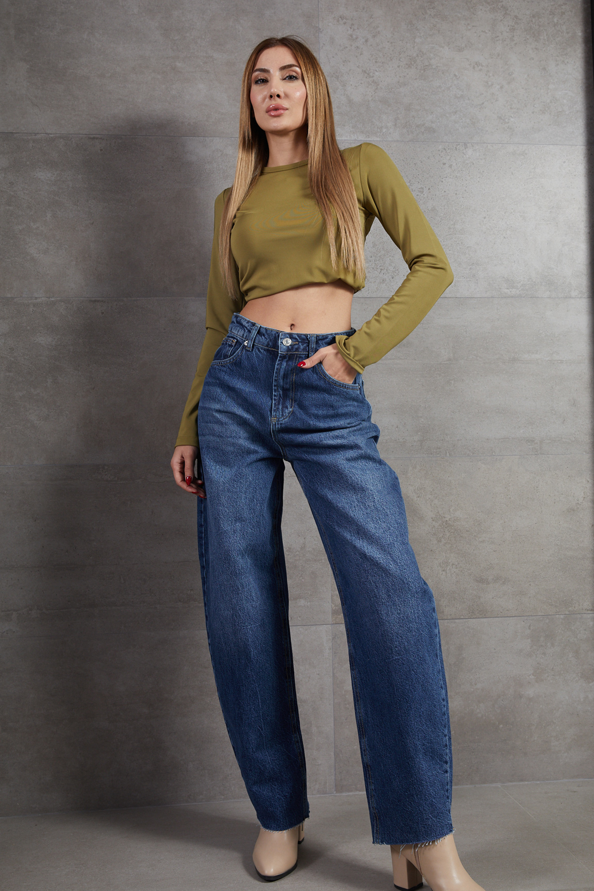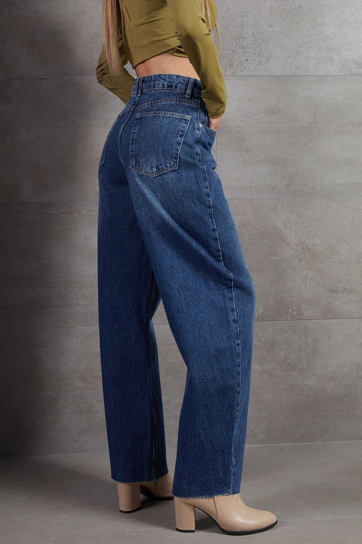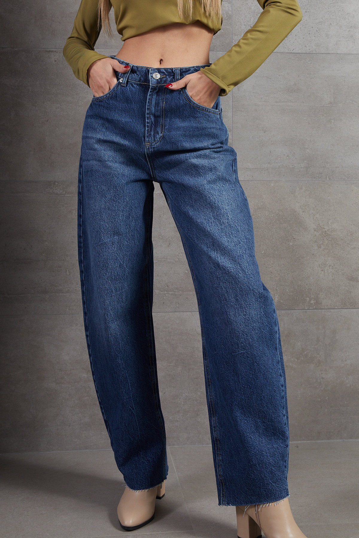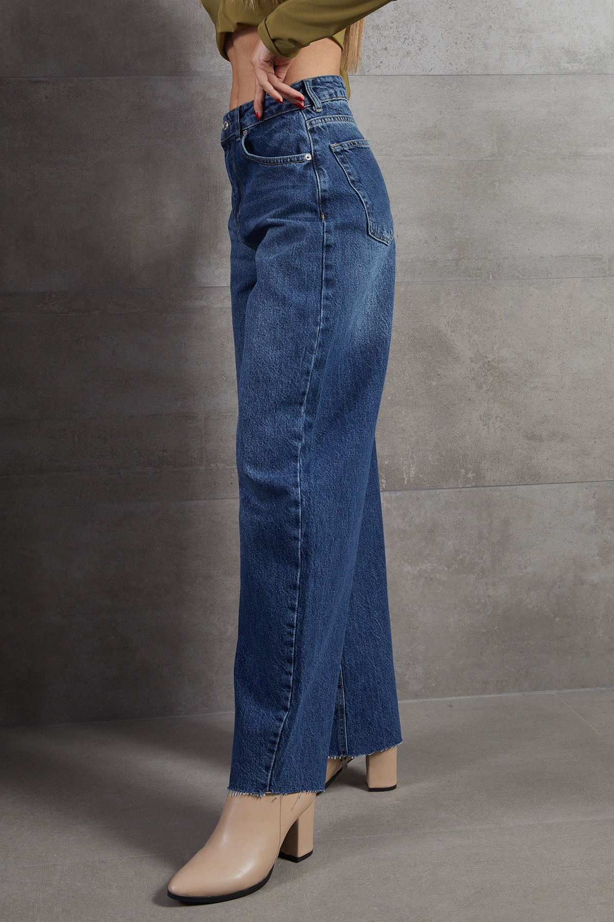 Yüksek Bel Geniş Paça Kot Pantolon-Mavi
