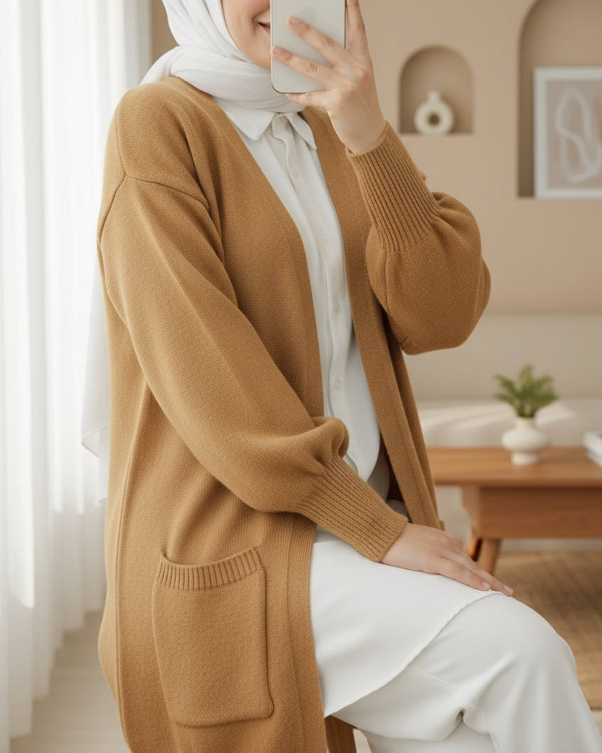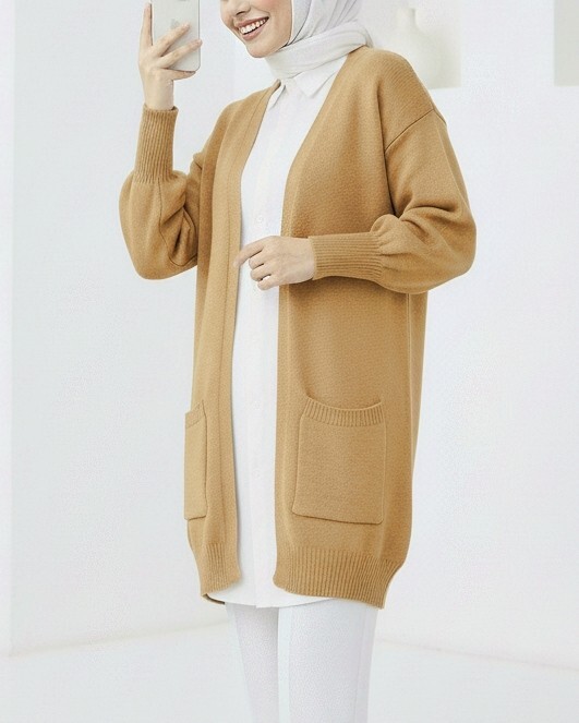 Yumoş Cift Cepli Triko Hırka -Vizon-Vizon