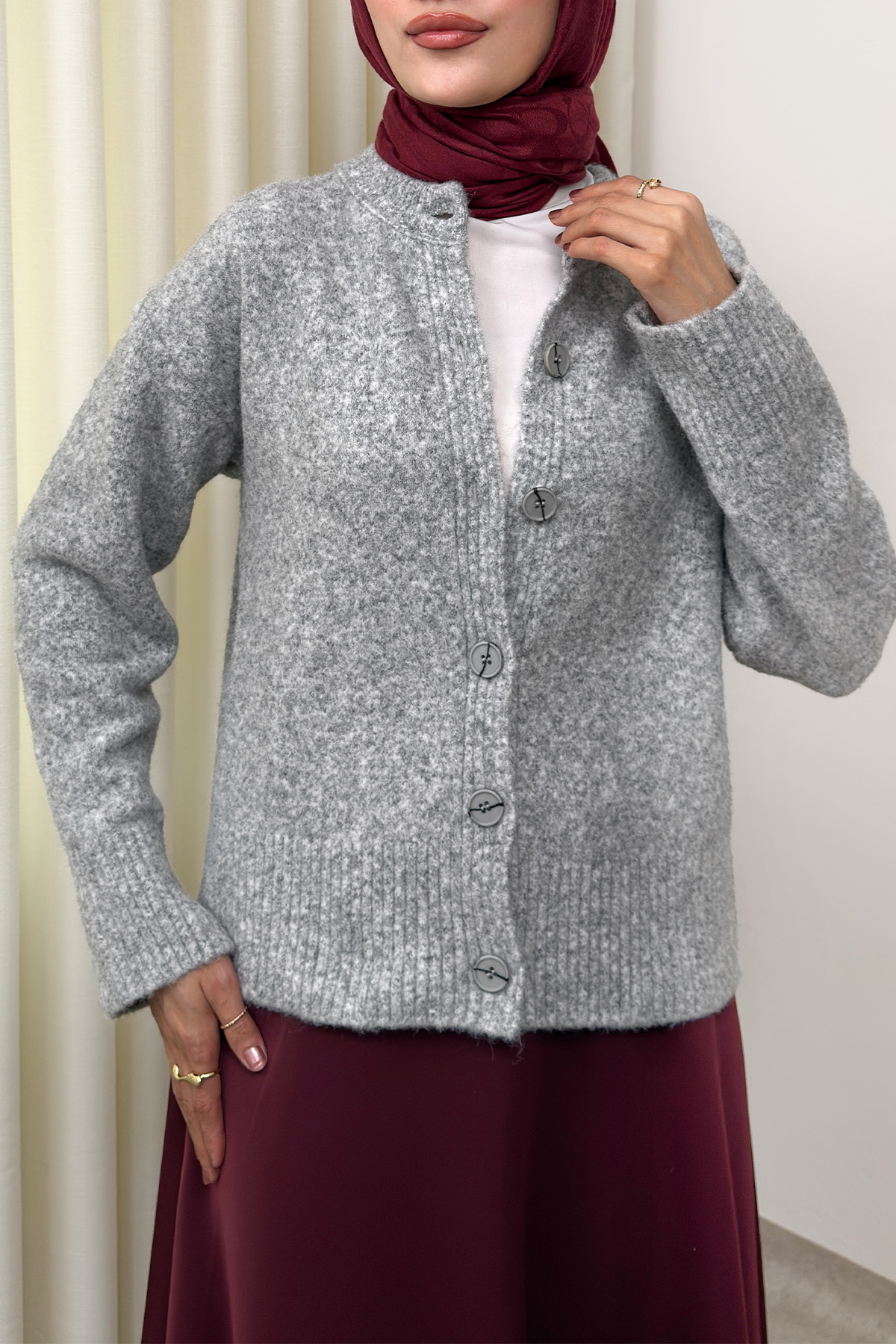 Yumoş Triko Hırka 70145 - GRİ-Gri