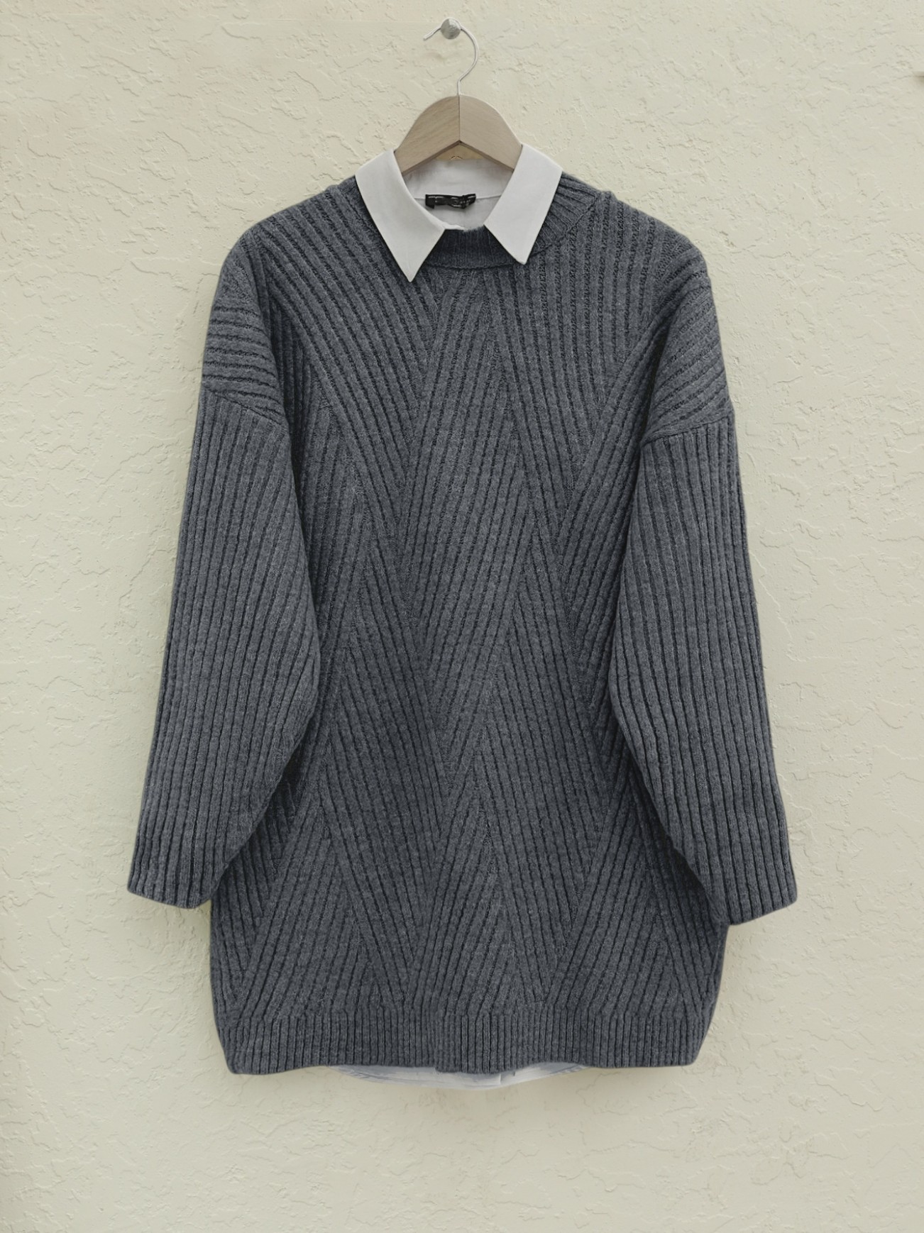 Yürütme Örgü Baklava Desenli Triko Tunik -Füme-Füme