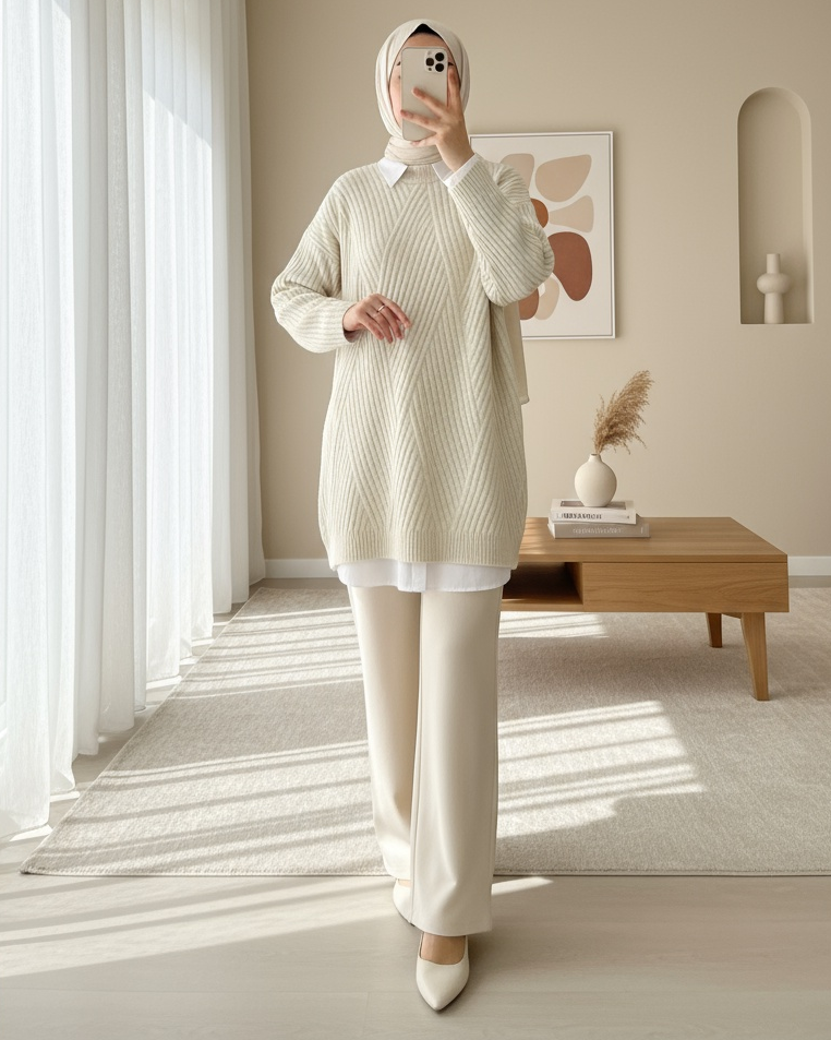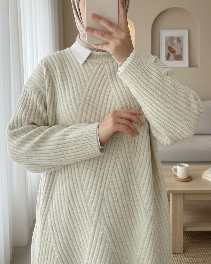 Yürütme Örgü Baklava Desenli Triko Tunik -Taş-Taş