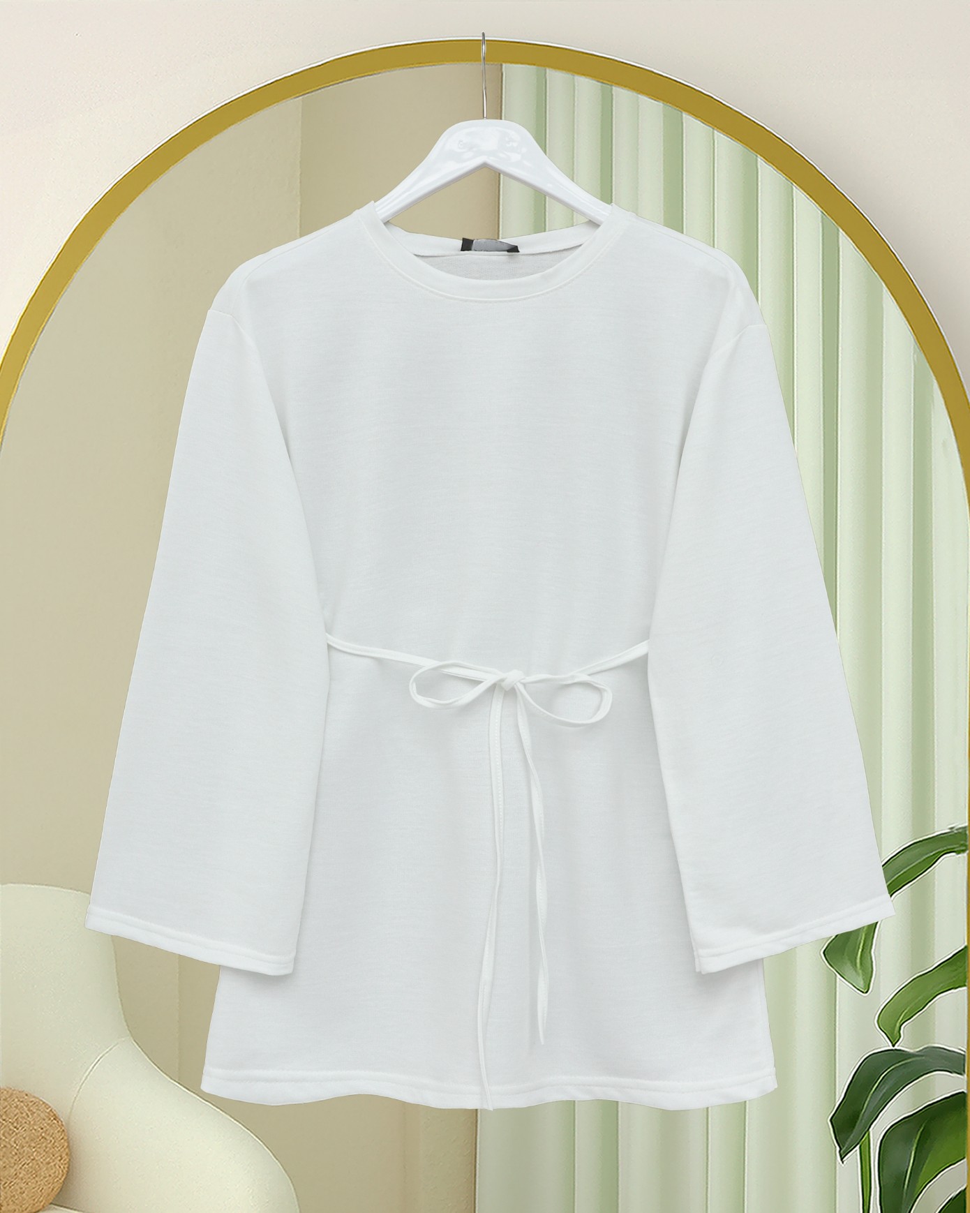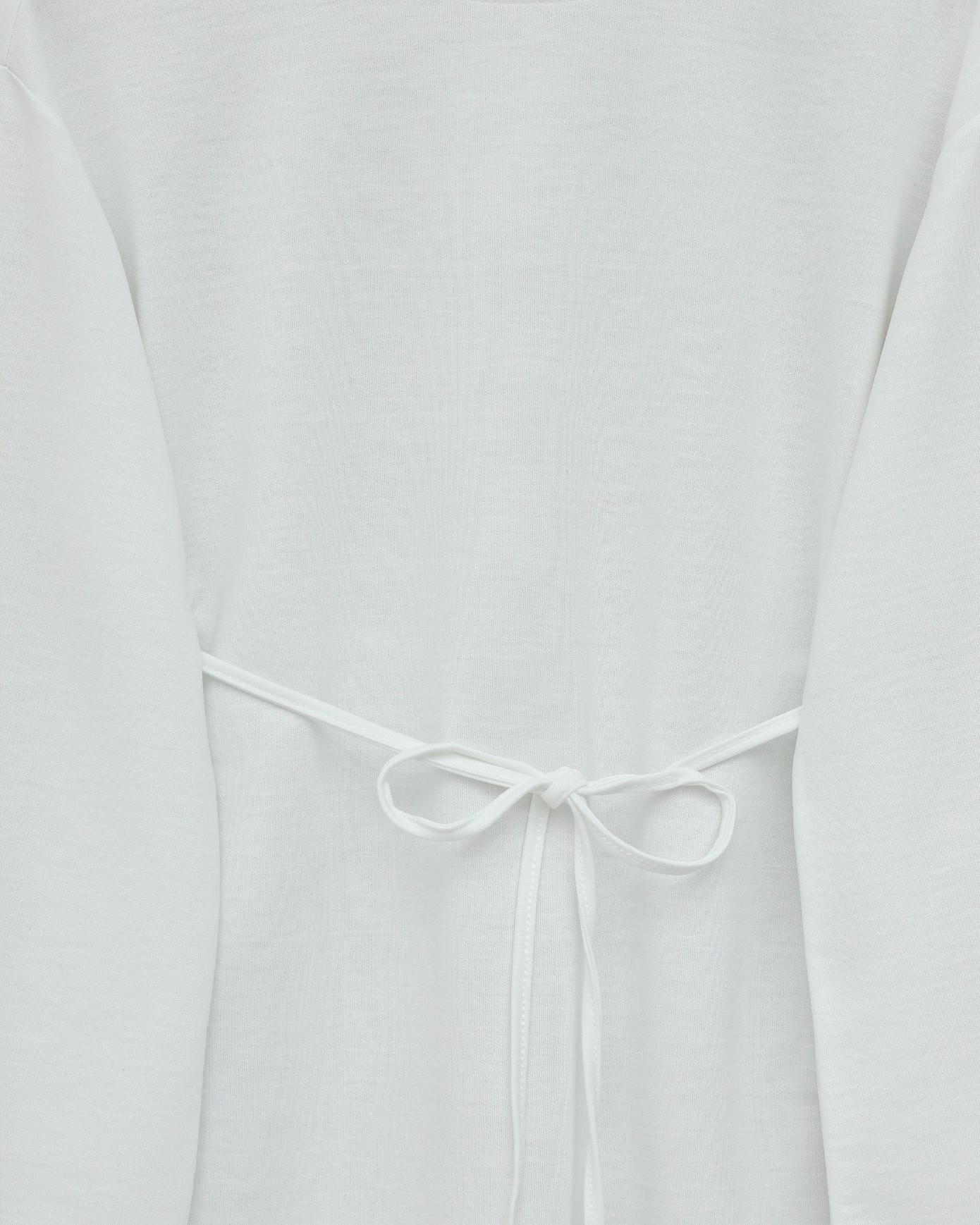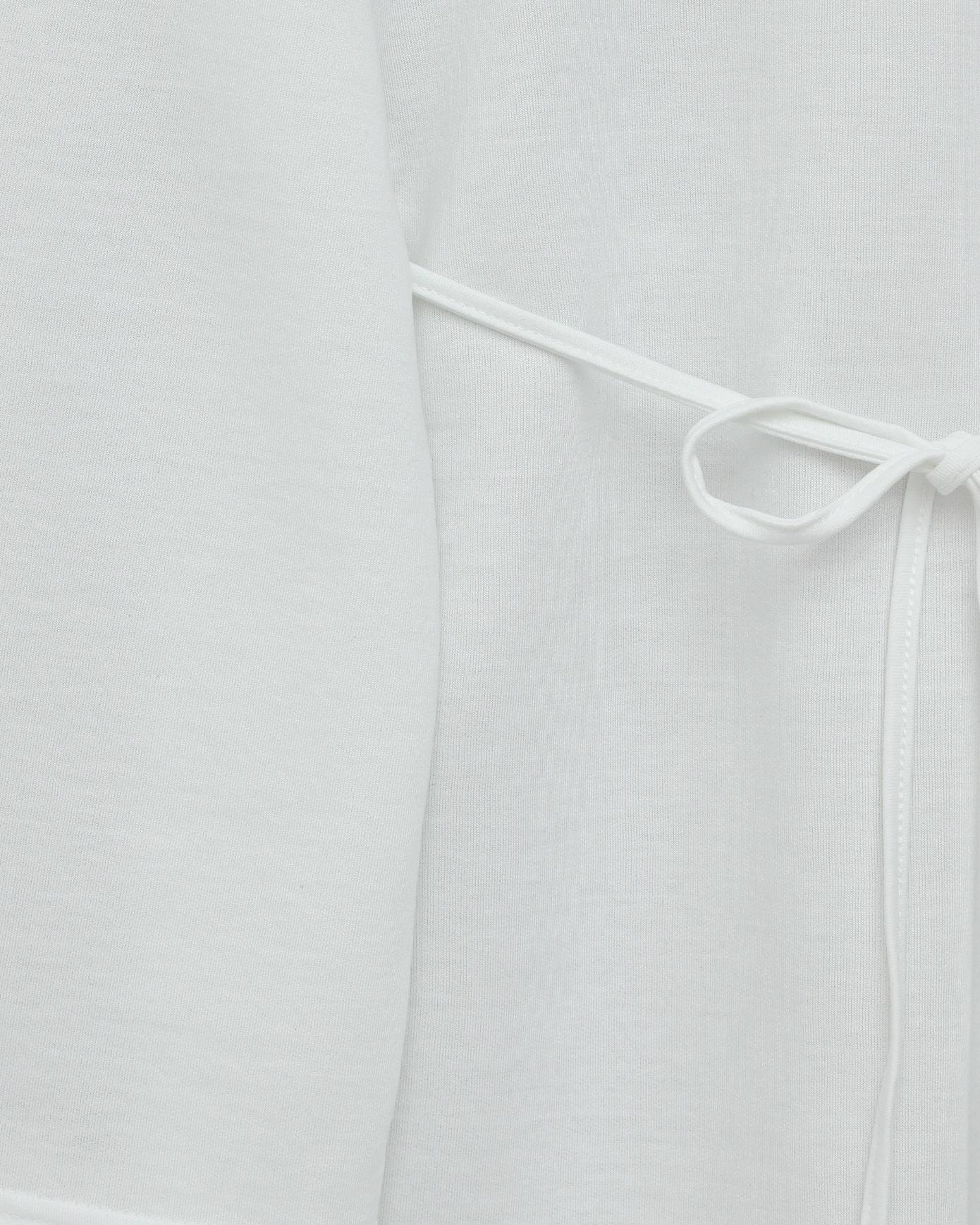 Yuvarlak Yaka Beli Bağlamalı Penye Tunik -Beyaz-Beyaz