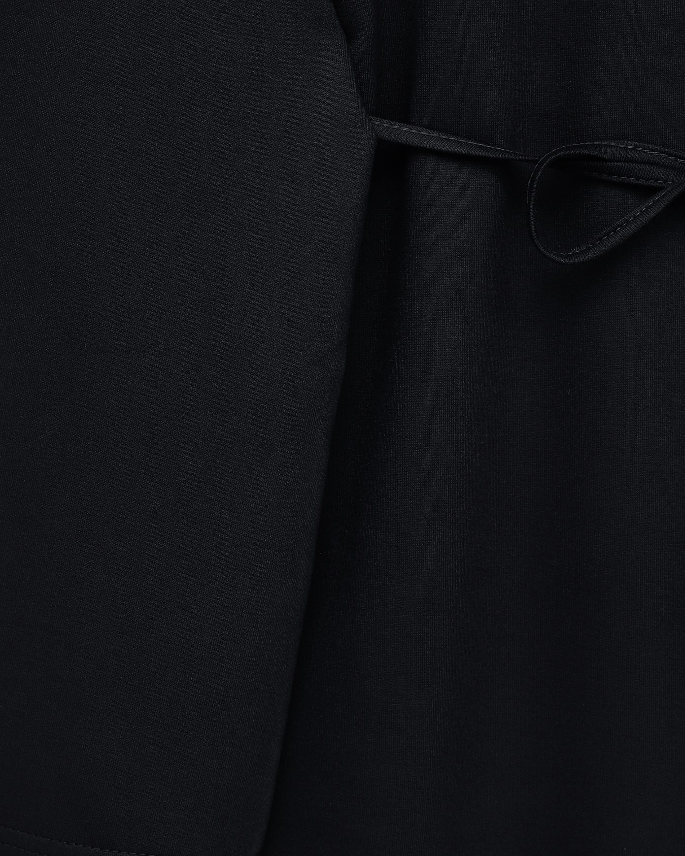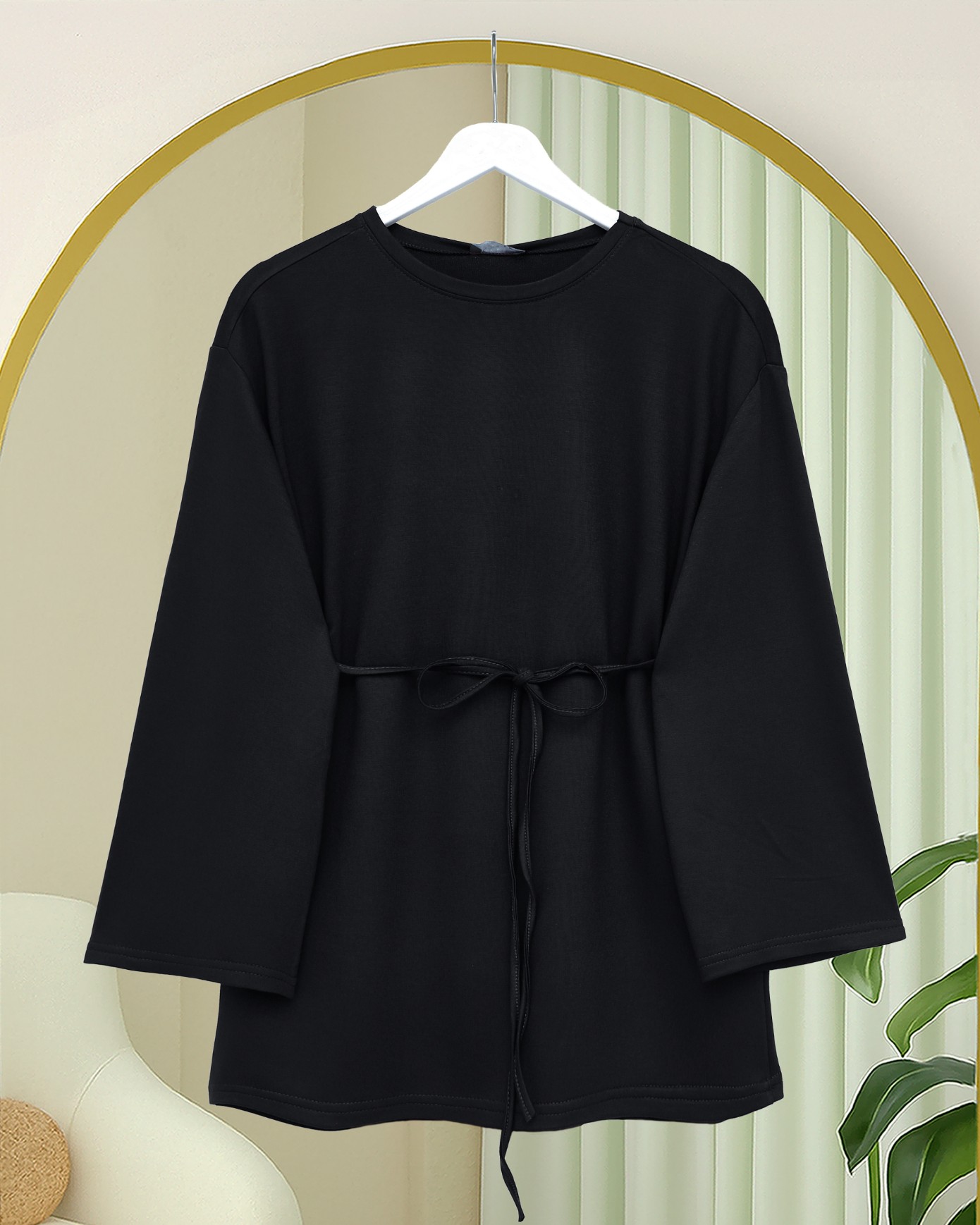 Yuvarlak Yaka Beli Bağlamalı Penye Tunik -Siyah-siyah
