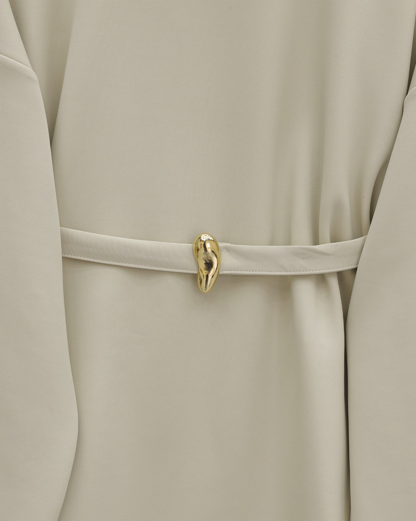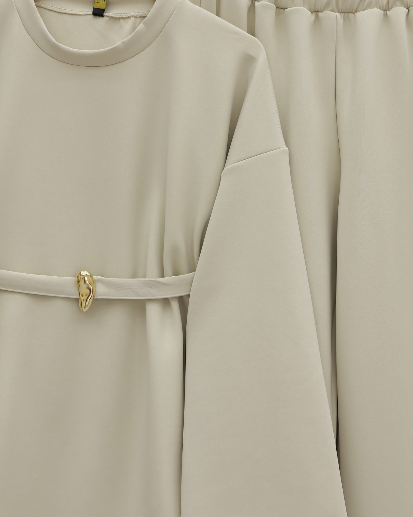 Yuvarlak Yaka Beli Kemerli Scuba Takım -Bej-Bej
