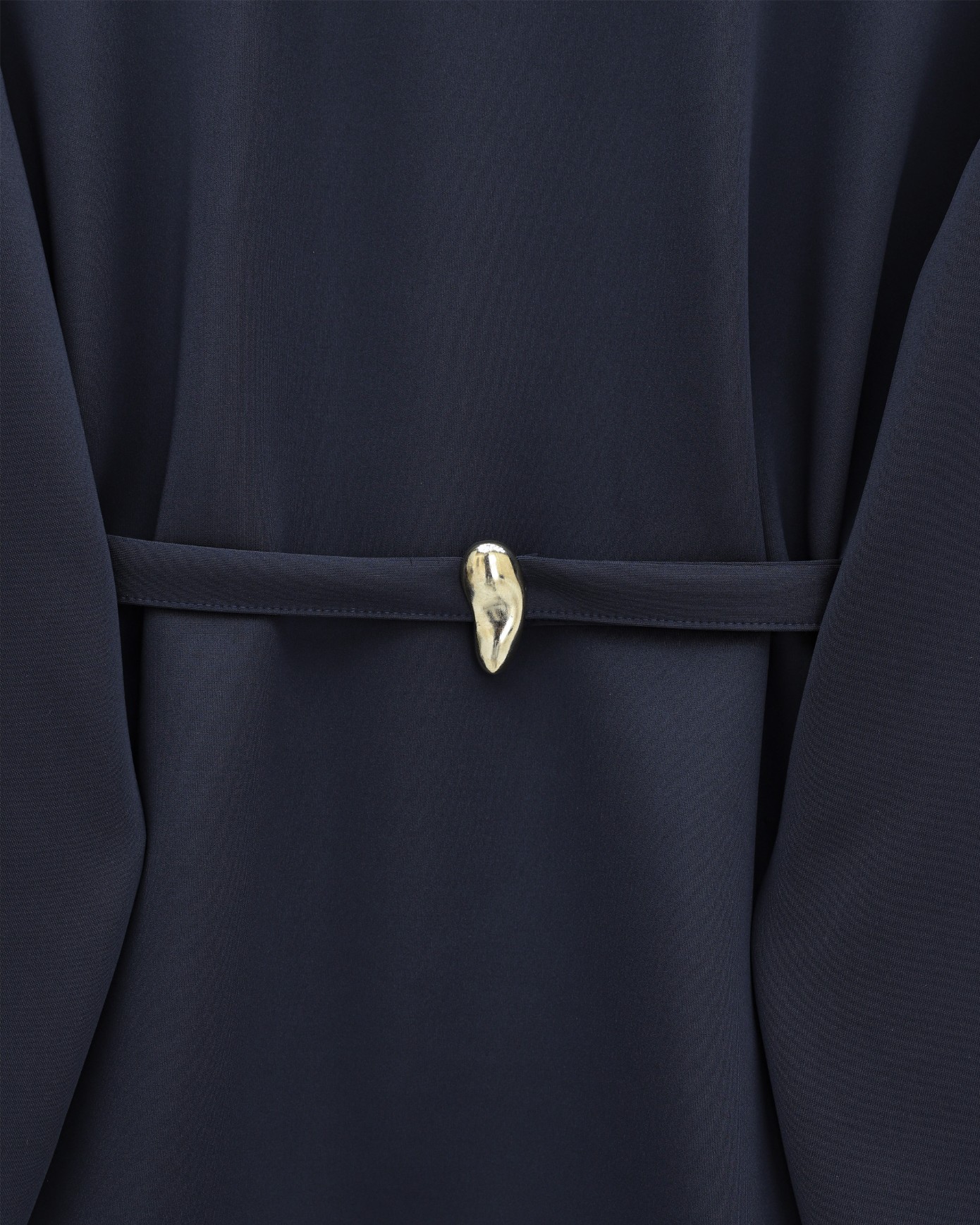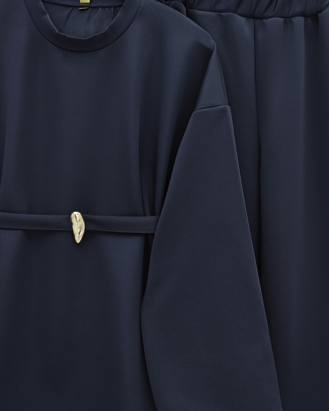 Yuvarlak Yaka Beli Kemerli Scuba Takım -Laci-Lacivert